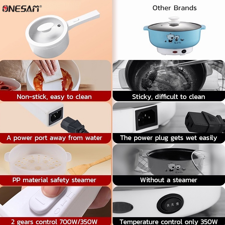 Multi Cooker Electric Rice Cooker 1.6L Hot Pot Mini Non Stick Ceramic Frying Pan Kitchen 700W Periuk Nasi Pot 電煮鍋 电煮锅 火鍋