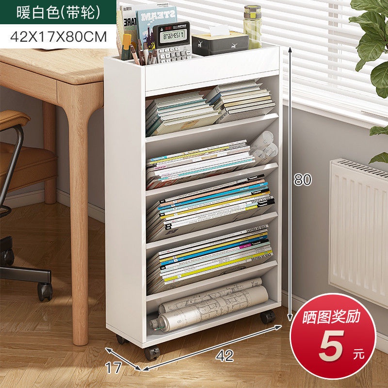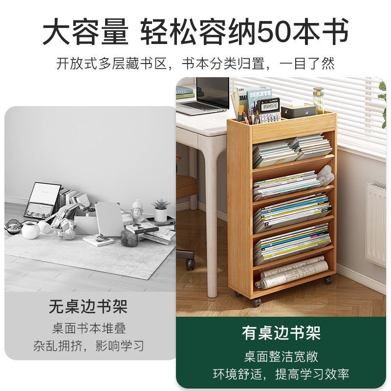 Table side storage rack movable bookshelf wheeled office desk side storage rack student desk book storage artifact