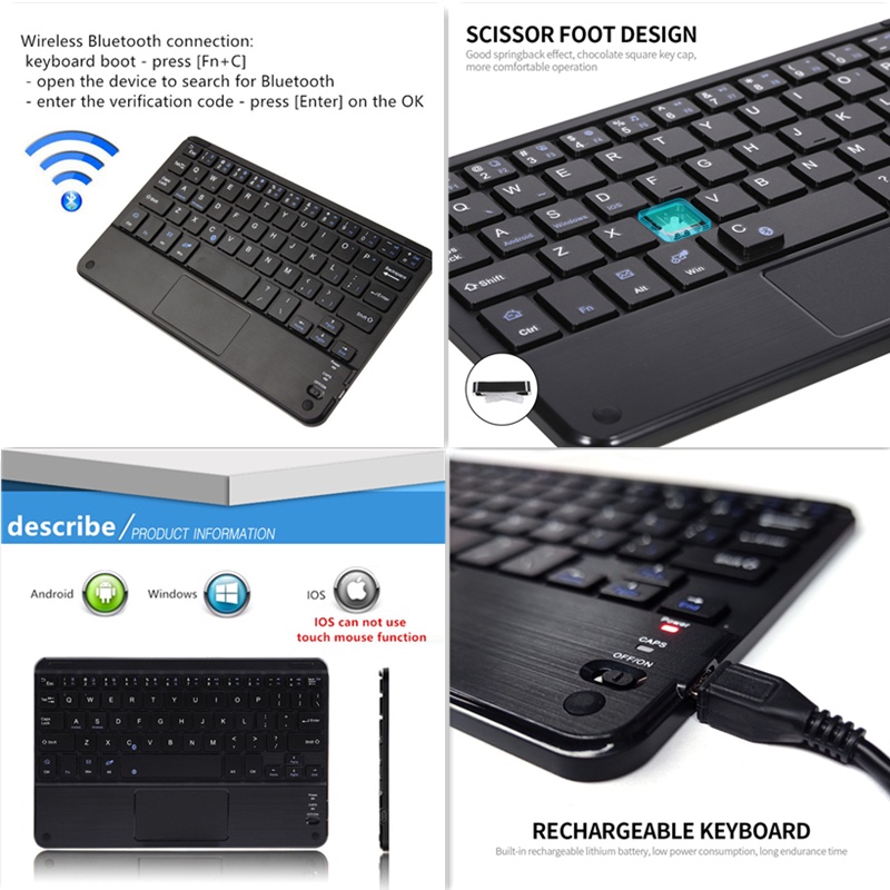 Tablet wireless keyboard for iPad Bluetooth touch keyboard 7inch mini keyboard compatible with ios Android Windows