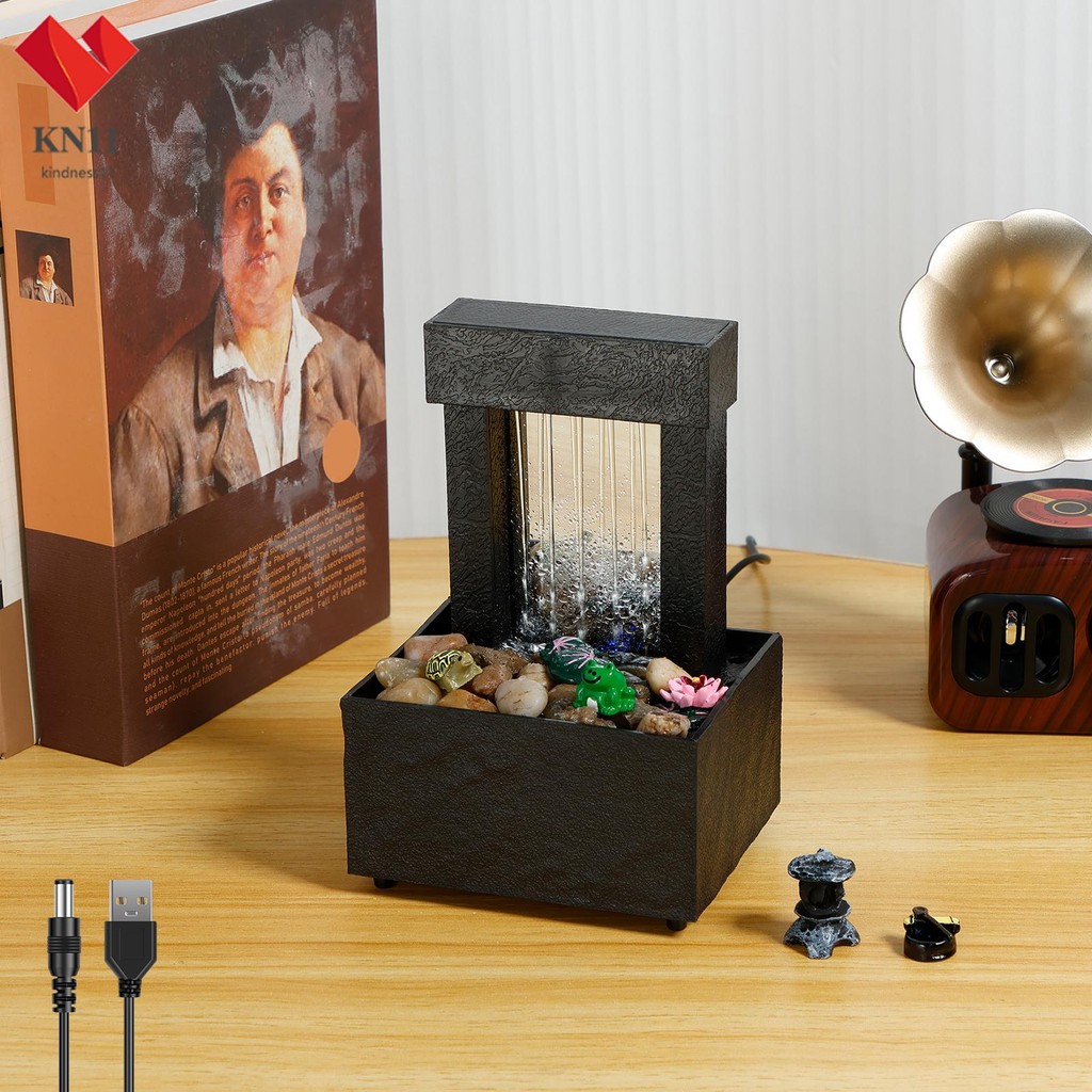 Tabletop Fountain Light Up Indoor Desktop Waterfall Fountain Battery/USB Operated Mini Water Fountain Feature Waterfall Decor SHOPCYC3499