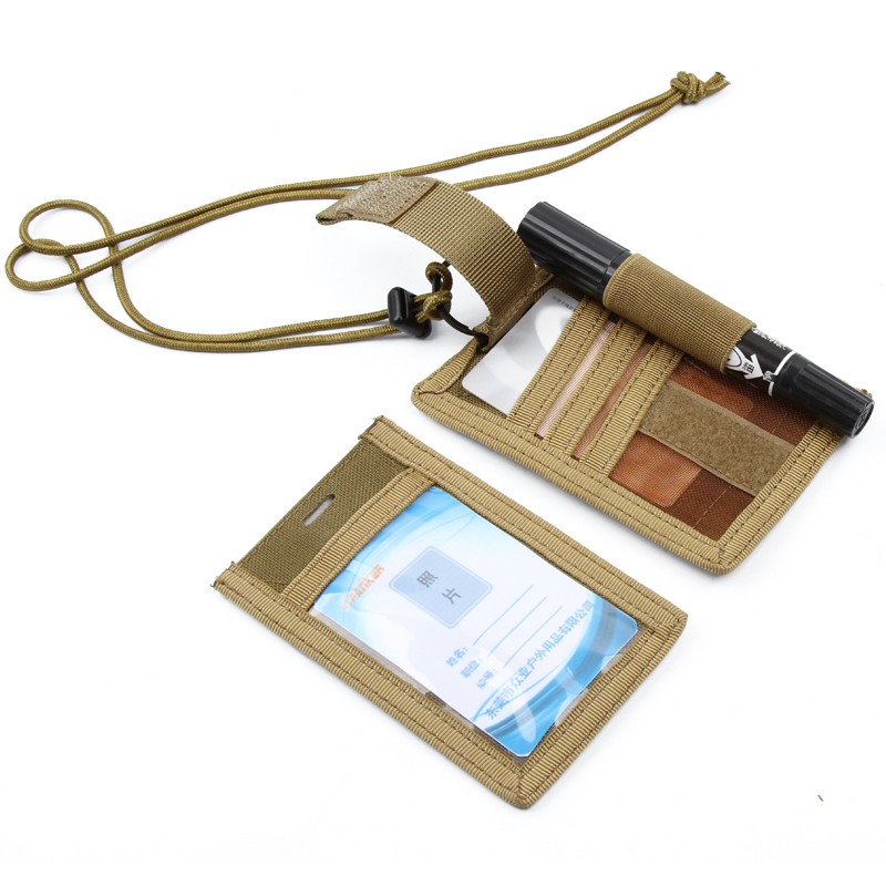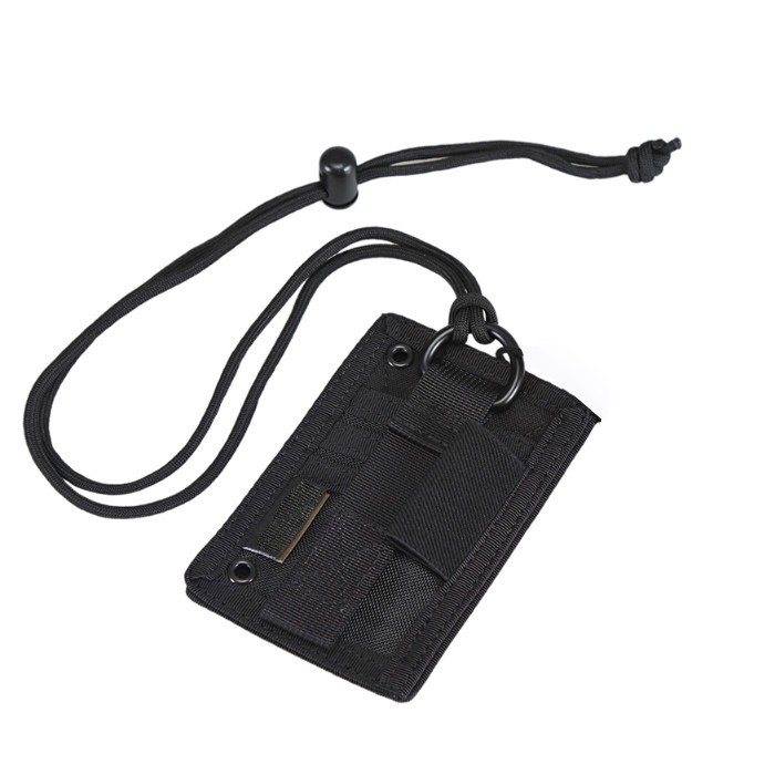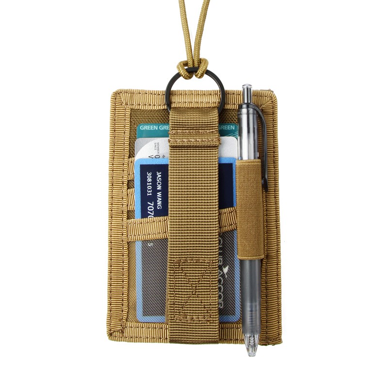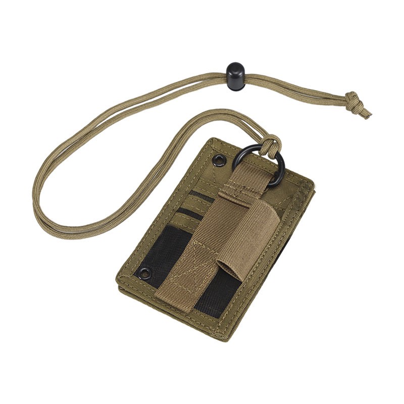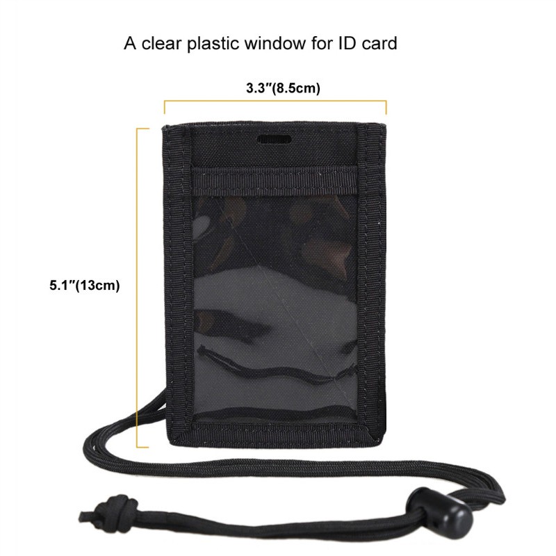 Tactical MOLLE ID Card Holder Hook Loop Patch Tour Guide Badge Holders Outdoor Pouch Pen Purse and Nylon Lanyard Credit Card Organizer Name Tag Cases