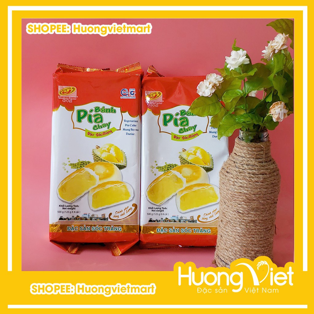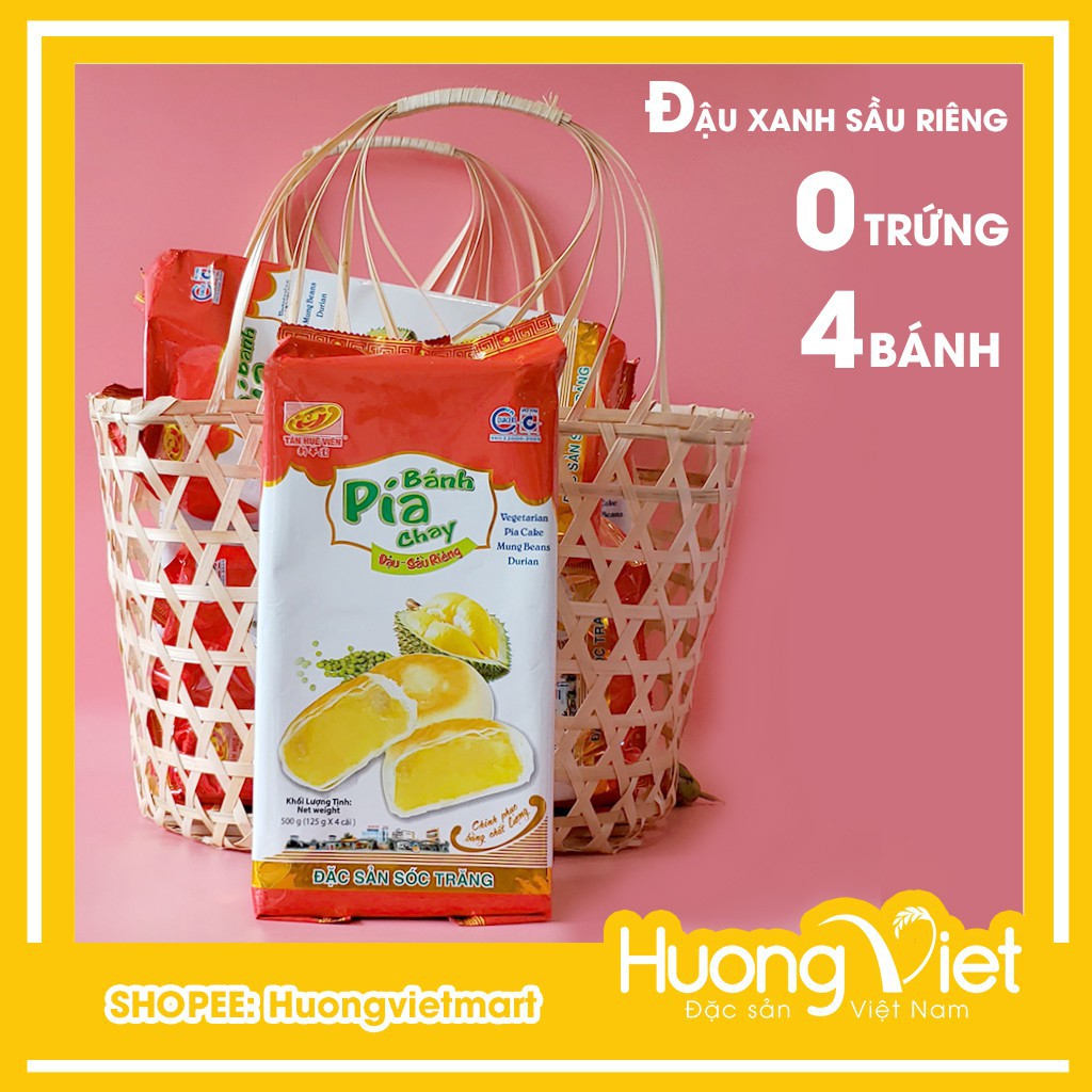 Tan Hue Vien green bean durian vegetarian pia cake large 500g, Soc Trang vegetarian pia cake without salted egg [BAG OF 4 CAKES]
