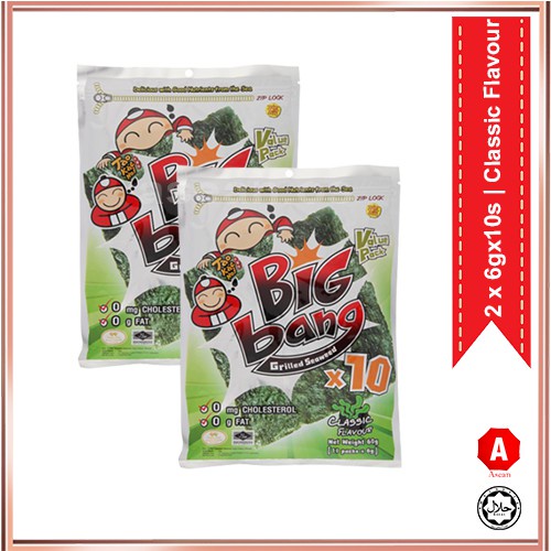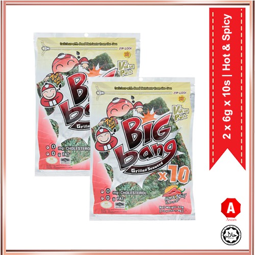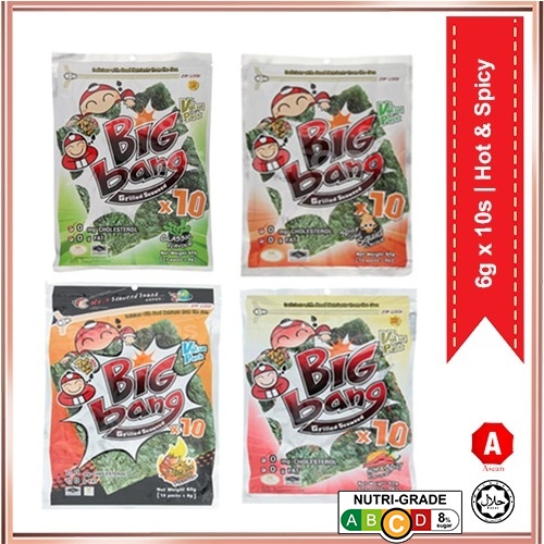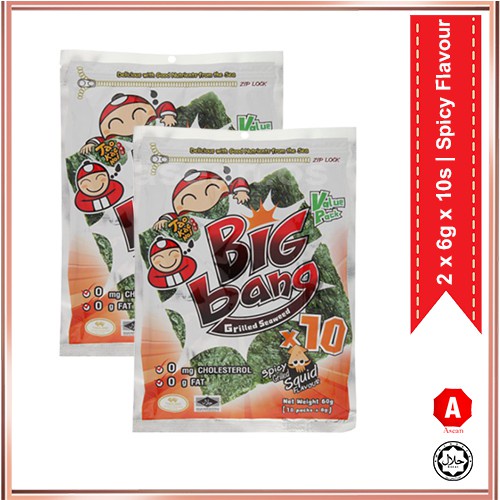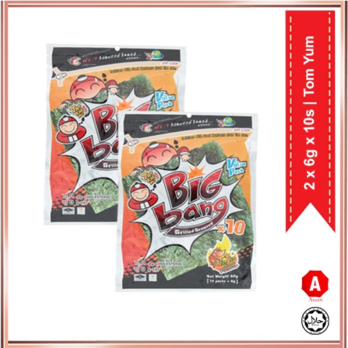 TAO KAE NOI BIG BANG CRISPY SEAWEED CLASSIC / SPICY / TOM YUM / HOT & SPICY FLAVOUR GRILLED 8 PACKS X 6G X 50G