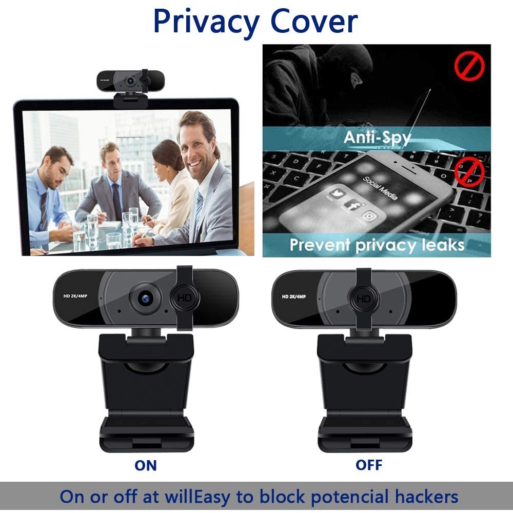 Taotuo 2K Webcam with Microphone,HD Webcam for PC With Privacy Shutter,Plug and Play USB Web Camera for Youtube,Video Ca