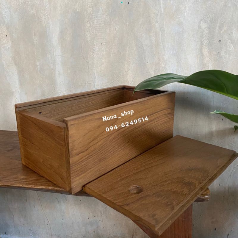 Teak Box Storage Multipurpose Wooden (Slide Cover)