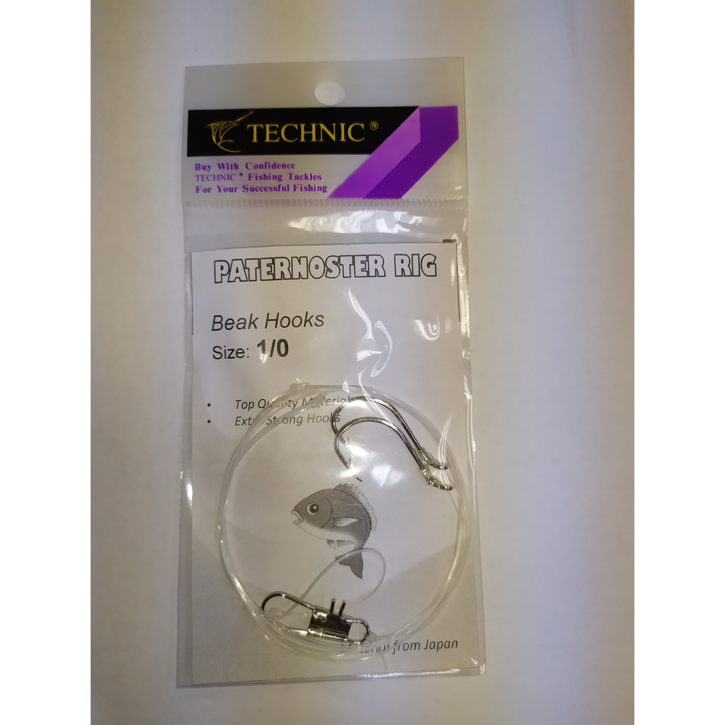 Technic Paternoster 2 Beak Hooks Pre-tied Rig - Sizes 6 to 2/0 - FC Line - Components made in Japan