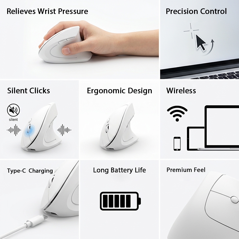 ERGONOMIC MOUSE Gaming 1600 DPI Vertical 2.4G Wireless Rechargeable Usb Receiver Battery For iPad MacBook Tablet Laptop