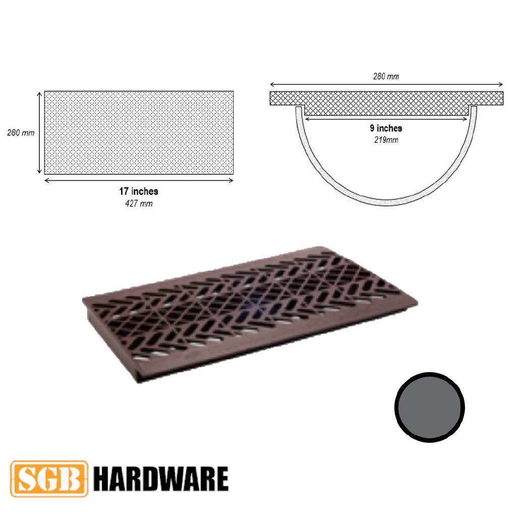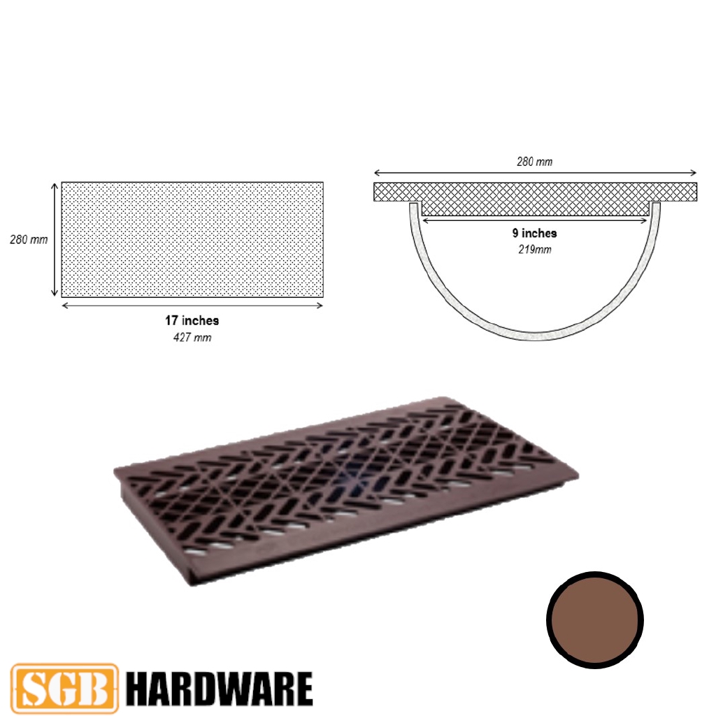 Techplas Plastic Drain Cover 9" X 17" - Brown / Black / Draintech Heavy Duty Drain Cover 9" ~