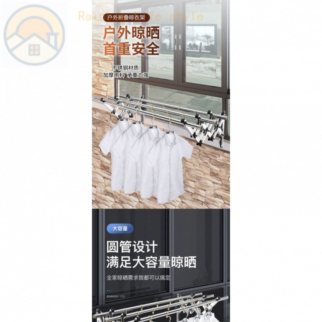 Telescopic Clothes Rail Drying Rack Balcony Window Sliding Folding Outdoor Stainless Steel Clothes Hanger Drying Rack Cool Exterior Wall Wall-Mounted