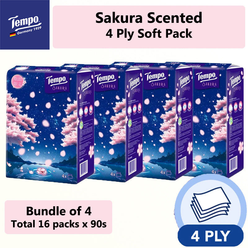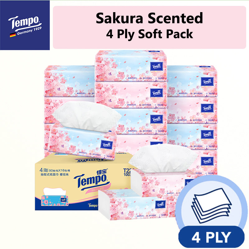 Tempo Sakura Tissue Paper 4 Ply 90 Sheets x 16 Packs Ready Stock Local Seller