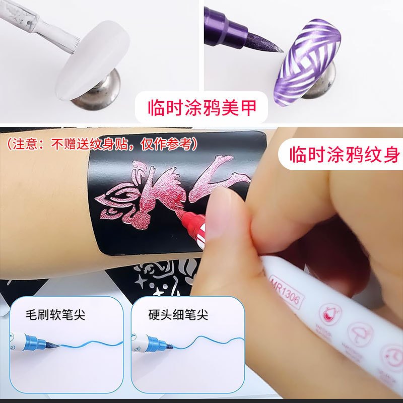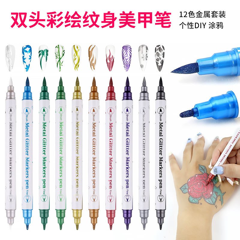 Temporary Tattoo Markers for Skin, 10 Colors Body Markers Kit for Kids and Adults, Nail Art Polish Pens, Flexible Dual-End Bold and Fine Tip Tattoo Pens