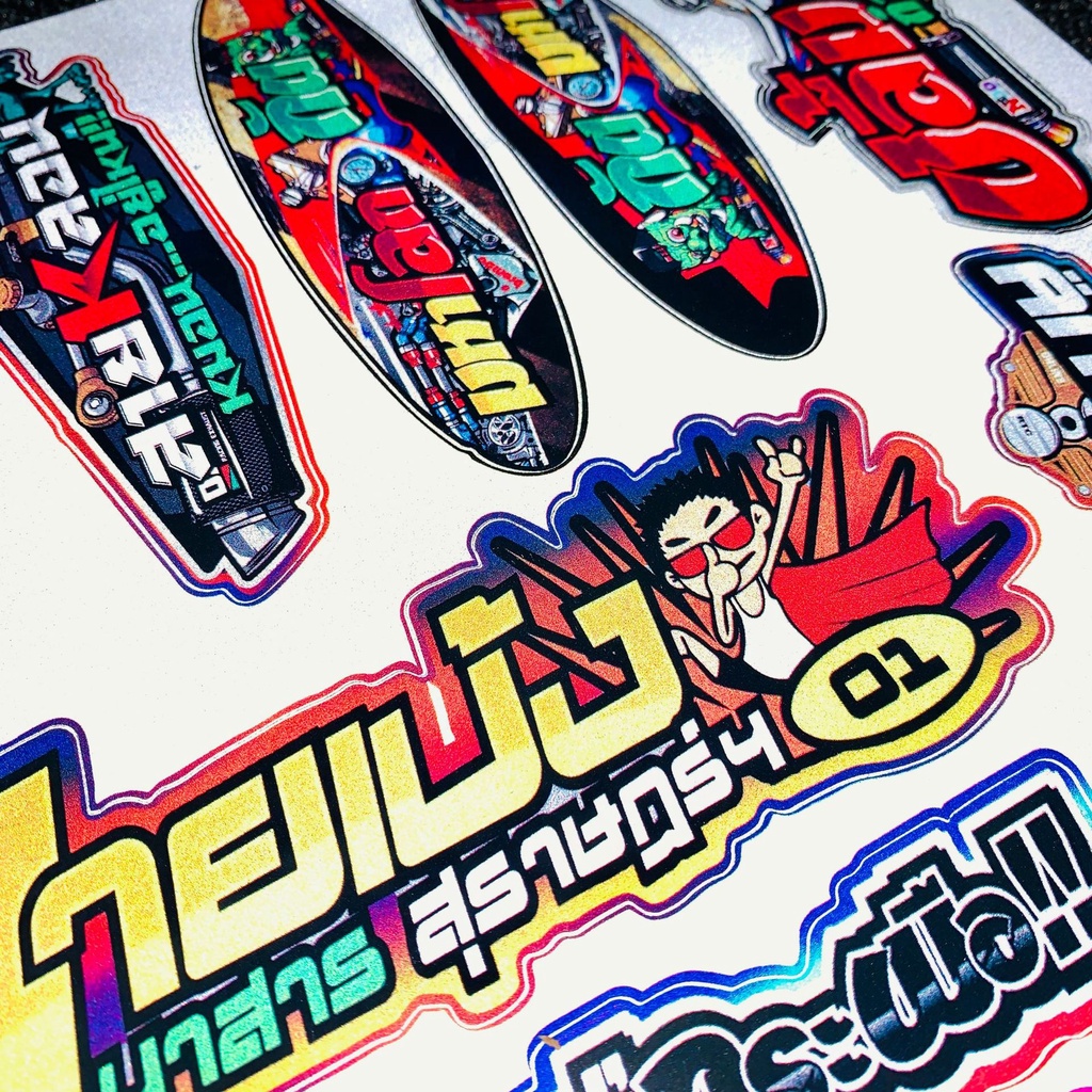 Thai Look Reflective Motorcycle Sticker Set Bike Side Strip Helmet Decals