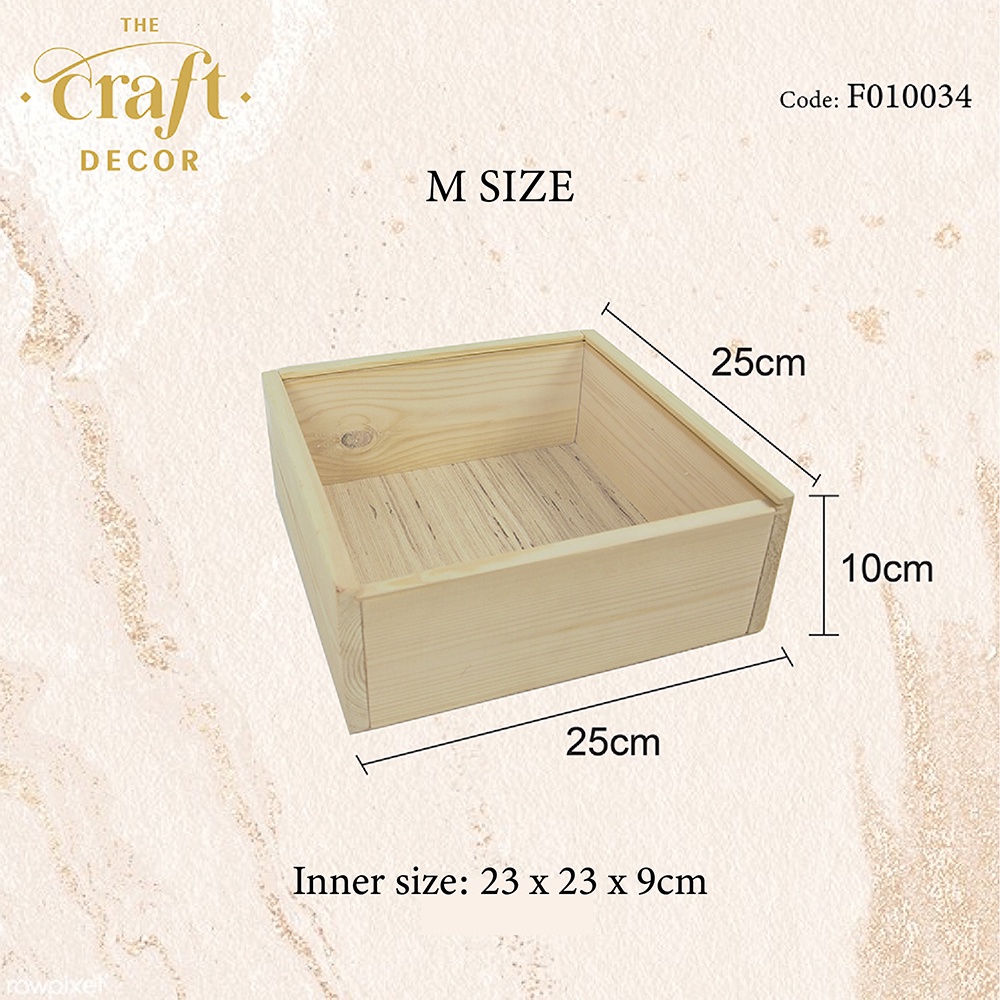 The Craft Decor Wooden Storage Box with Acrylic Sliding Top | Box | Kotak Kayu Duit Hantaran