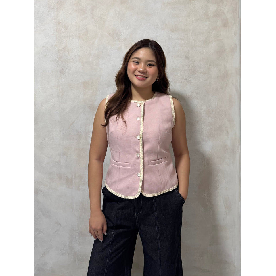 The Mad Theories Coco Tweed Vest (Pink & Black)