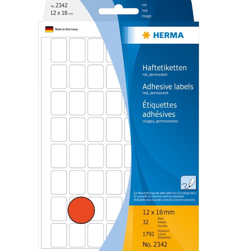 The Office Shoppe - HERMA Red Rectangle Sticker Office Pack Multi-purpose Labels 12 x 18 mm (2342)