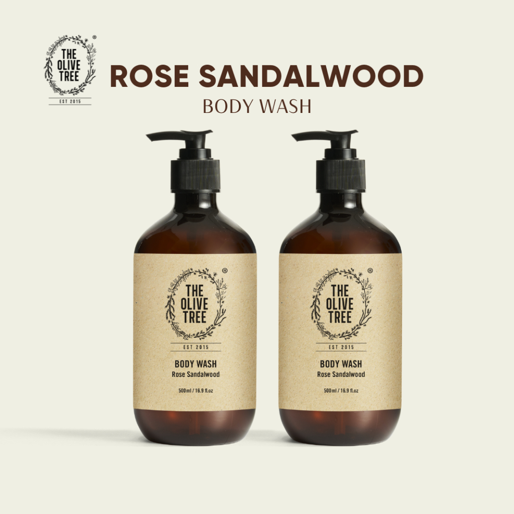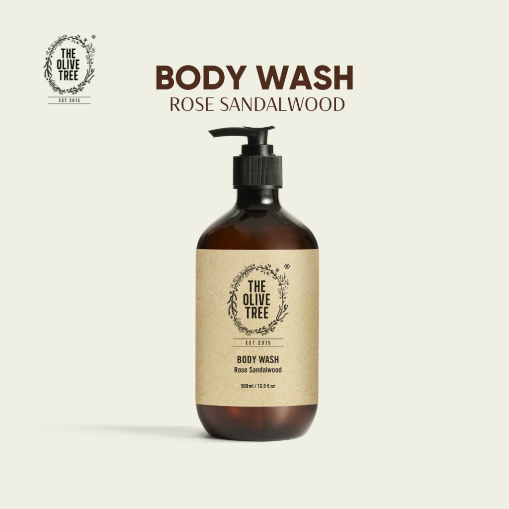 The Olive Tree Rose Sandalwood Body Wash(500ml) for Dry Itchy Rashes - All Natural ingredients