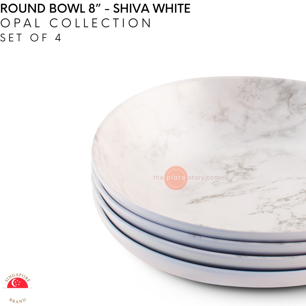 The Plate Story - 4Pcs Opal Round Bowl 8'' - Shiva White - Unbreakable and Sustainable Melamine Bowl