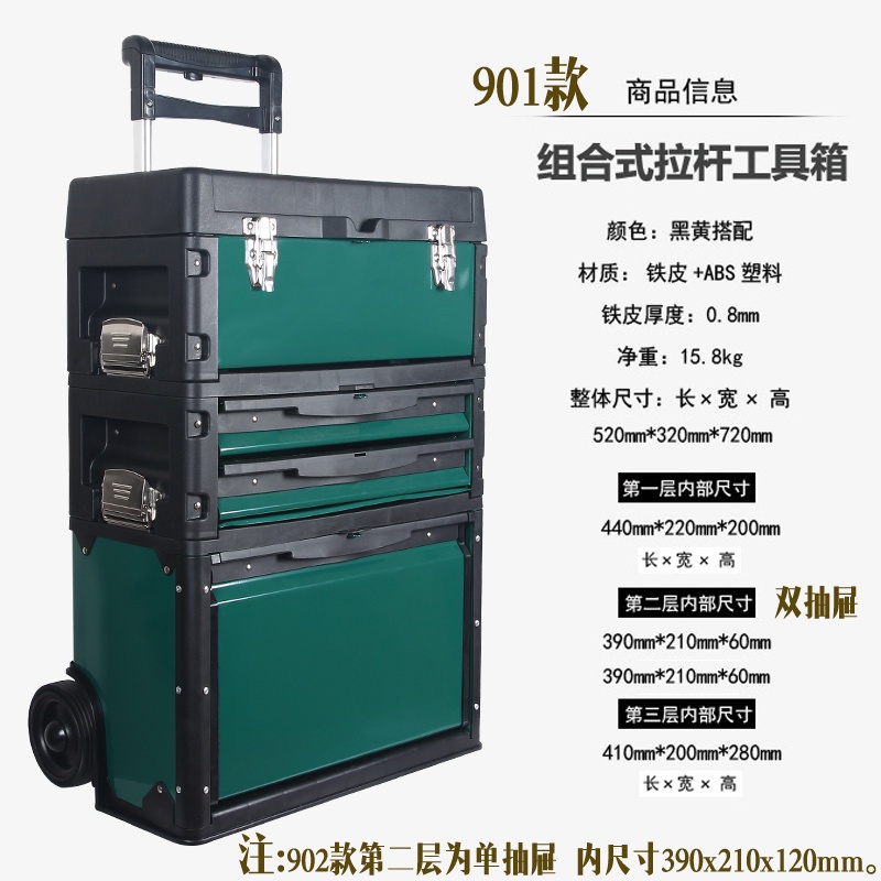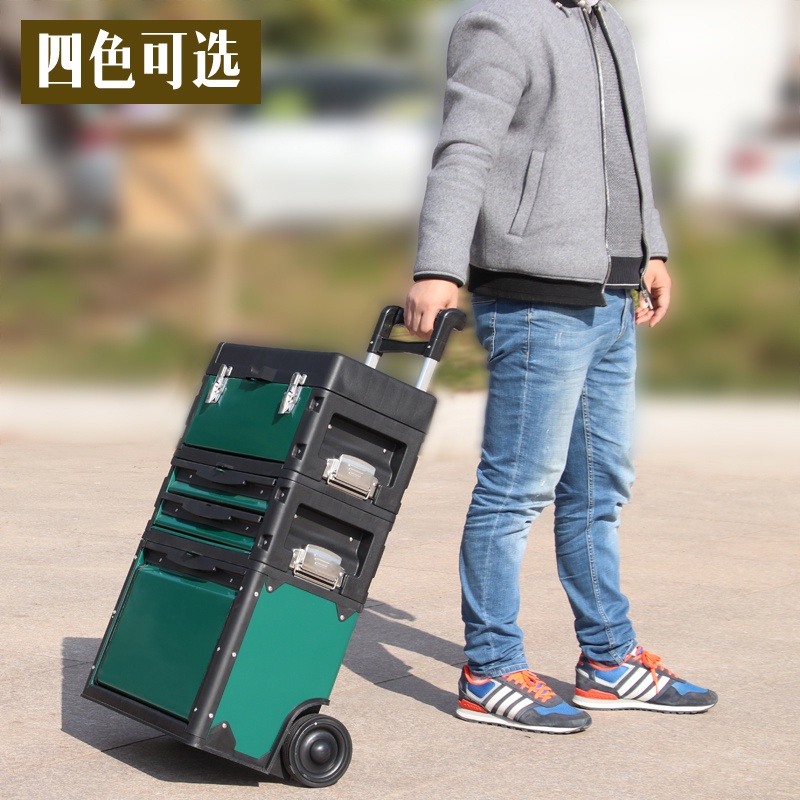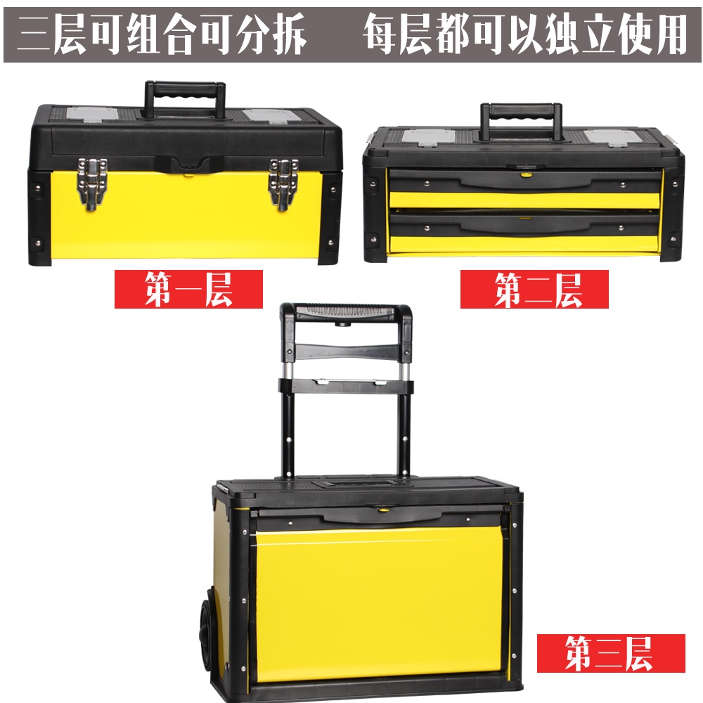 Three-layer Separate Portable Multi-function Trolley Toolbox Portable Hardware Combination Tool Cart Tool Box With Wheels Complete Toolbox Professional Storage System Tray Garage Workbench Trolley Case Hand-drawn Luggage Transfer