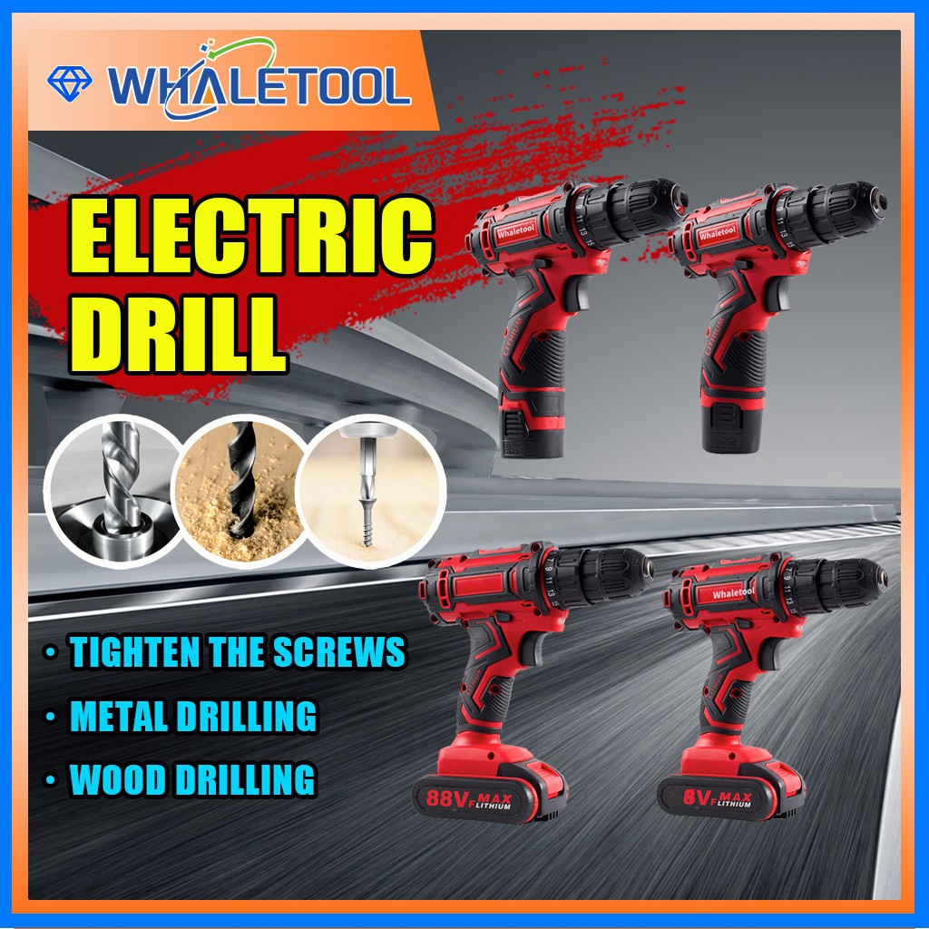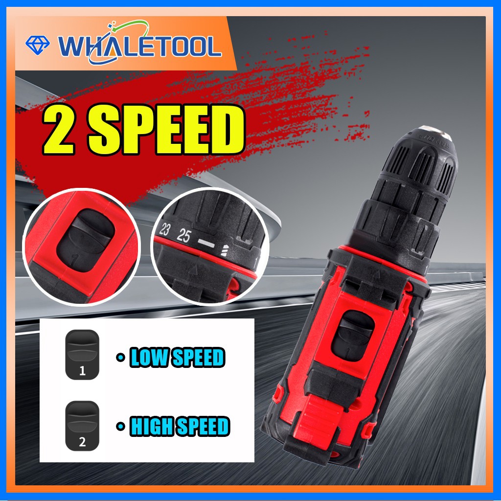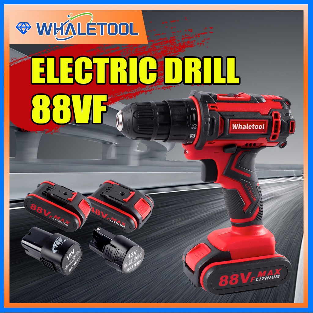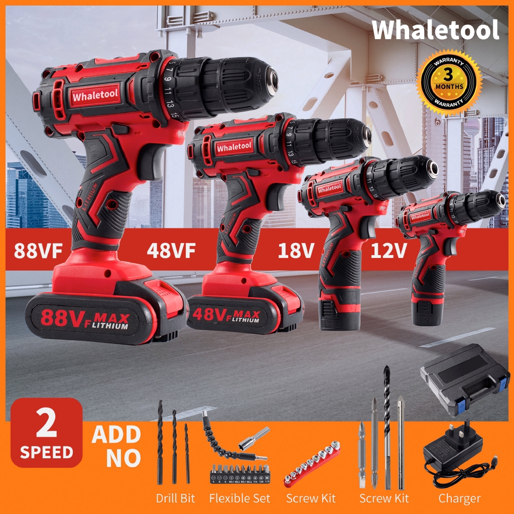 Three month warranty whaletool 12v 18v 48vf 88vf 2BATTERY Cordless Electric Drill Screwdriver With 2 Mode 2 Speed accessories + Plastic box