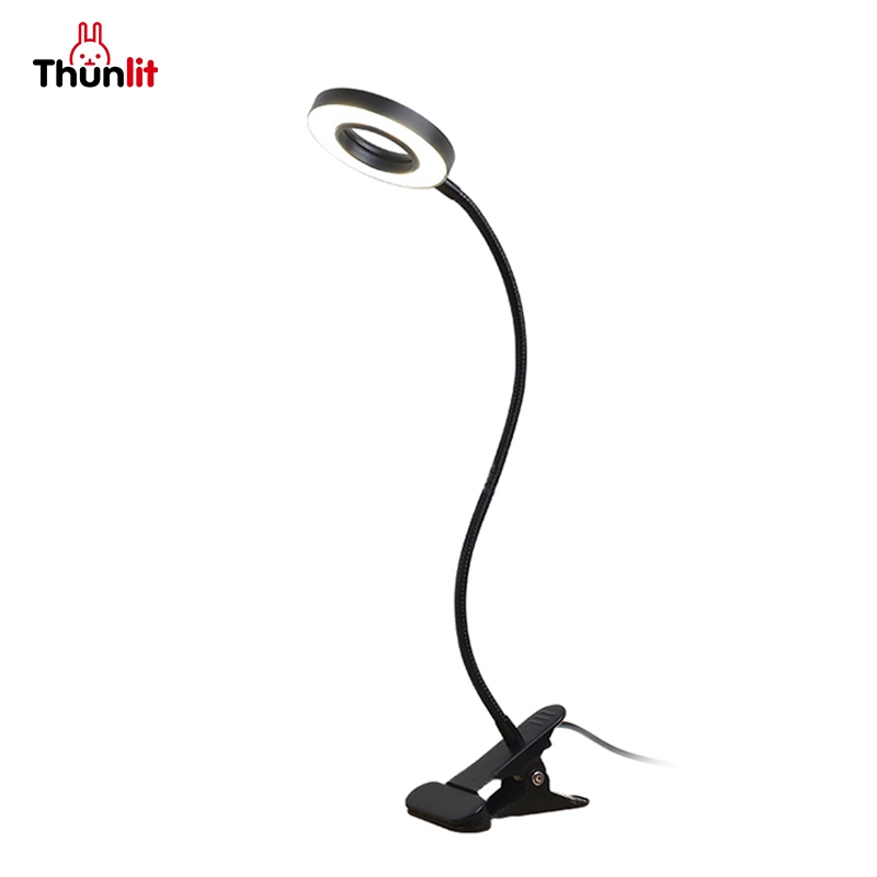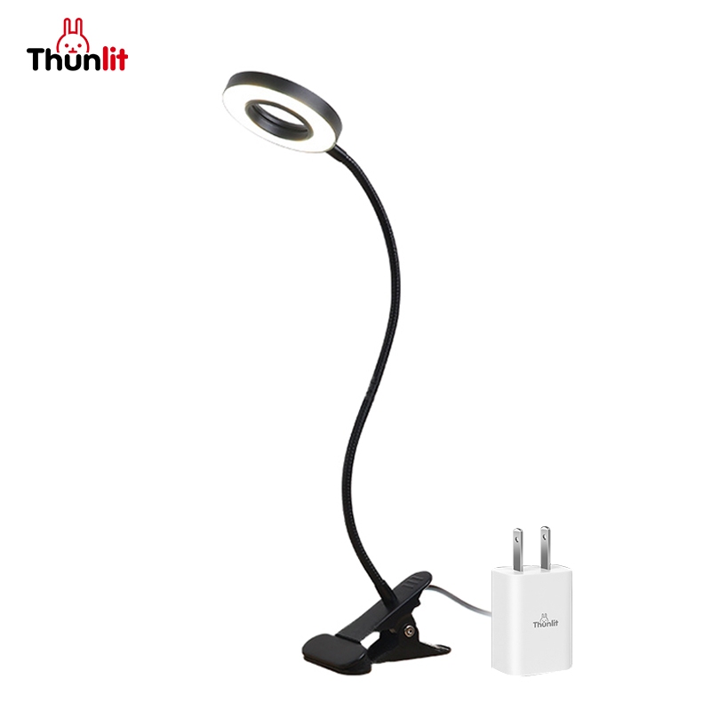 Thunlit USB Clip Light 8W Black Metal Flexible Plug-in Clip Lamp with 10 Brightness