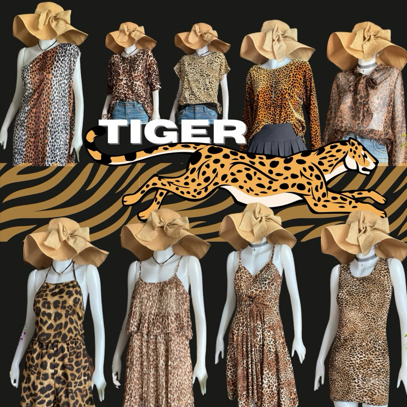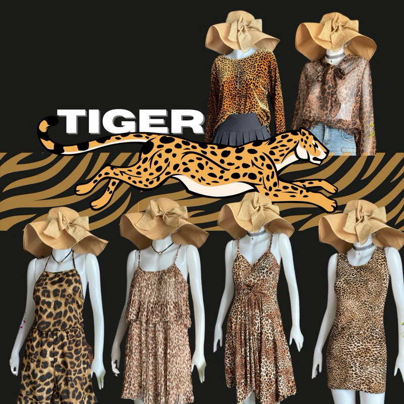 Tiger Print Shirt Dress Spaghetti Strap Top Tank Tube Multi-Style Pattern