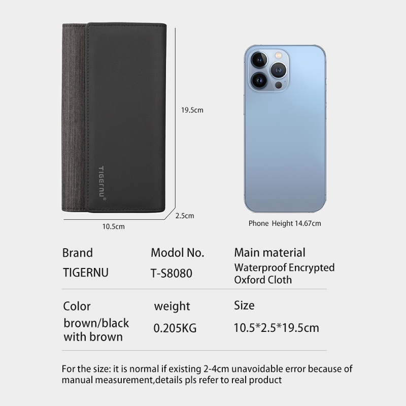 Tigernu 8080 Long Wallet Waterproof Coin Pouch Cardholder Purses