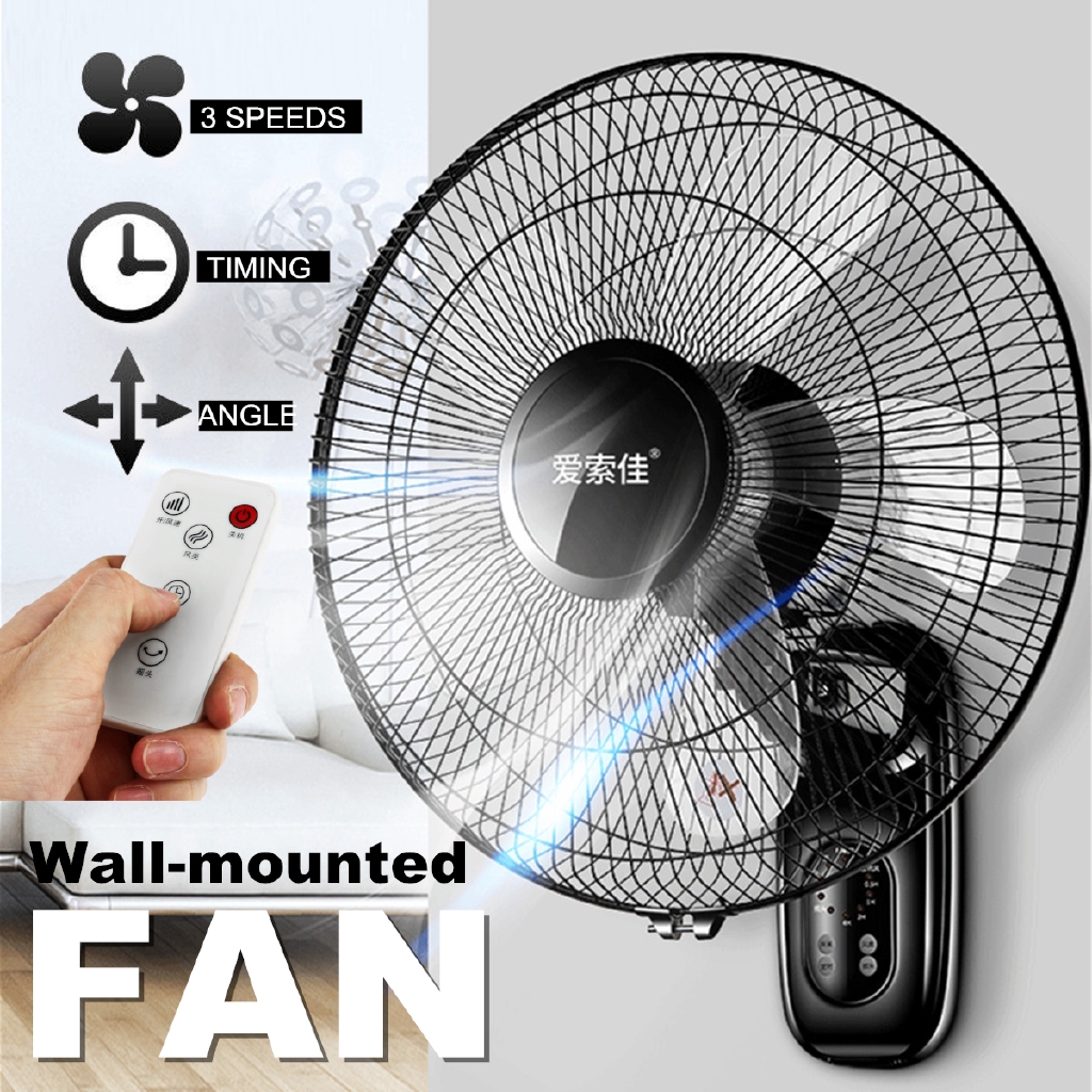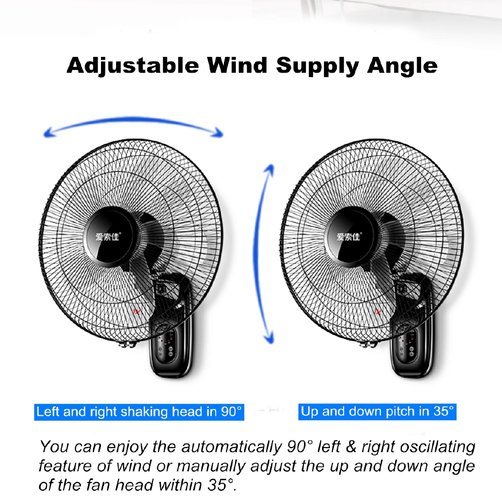 Timer + Remote 220V 3 Gears Oscillating Wall Mounted Adjustable Fan Home Cooling