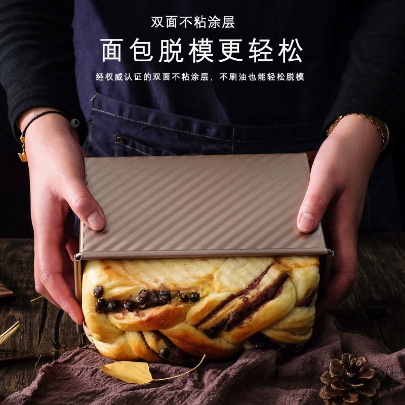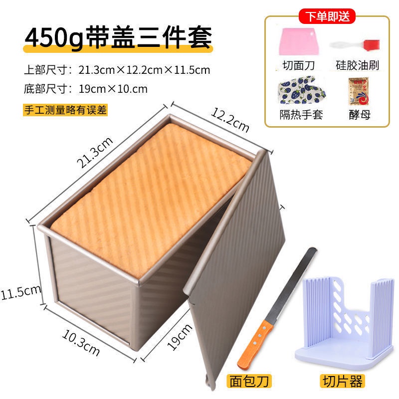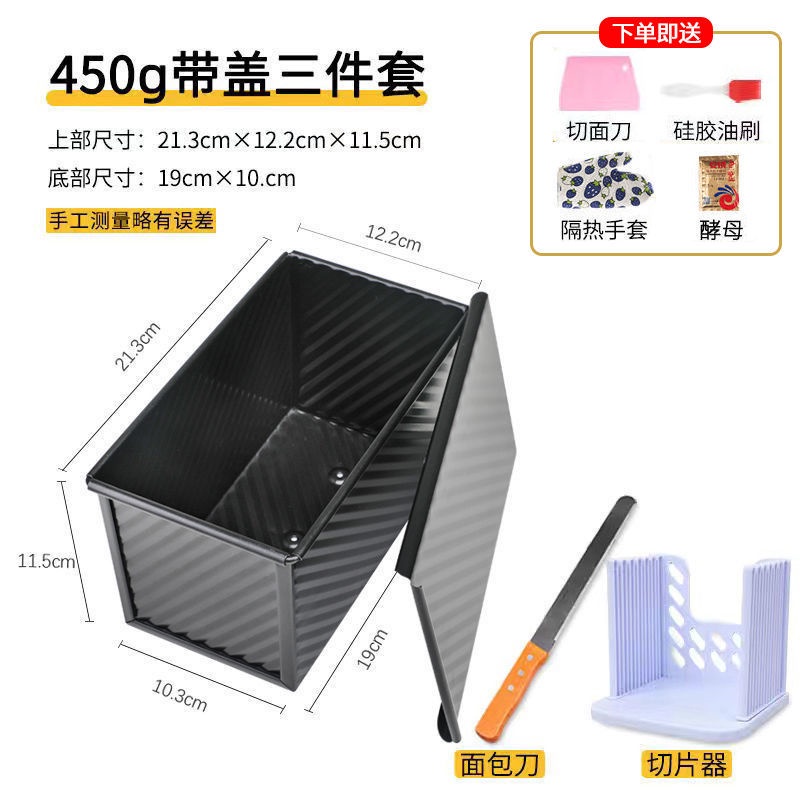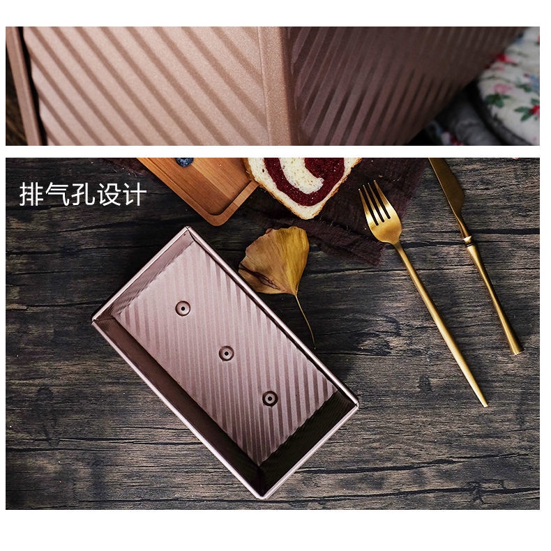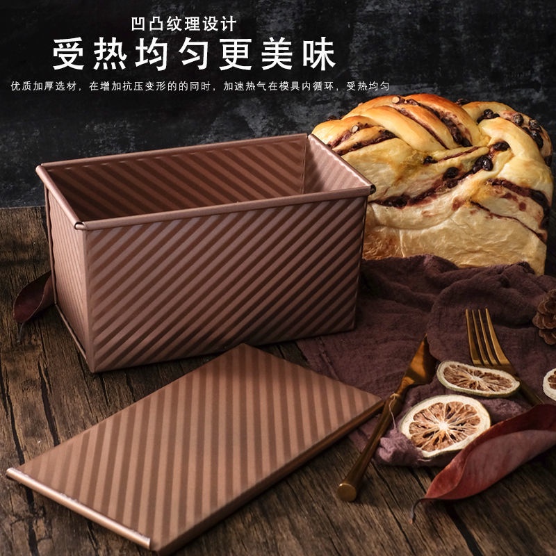 Toast Mold 450G Non-Stick Bread Mold with Lid Oven Household Rectangular Corrugated Toast Box Baking-Wave French Bread Baking Mold