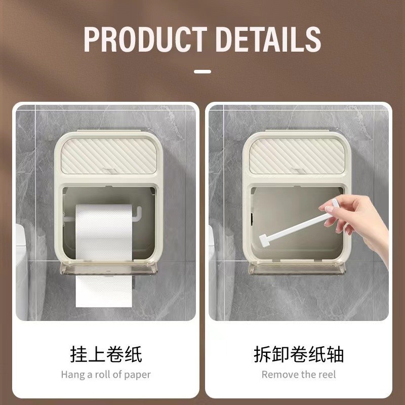 Toilet Paper Roll Tissue Box Holder Container Sanitary Multi Storage Drawer Washroom Wall Water Proof Rack No Drill