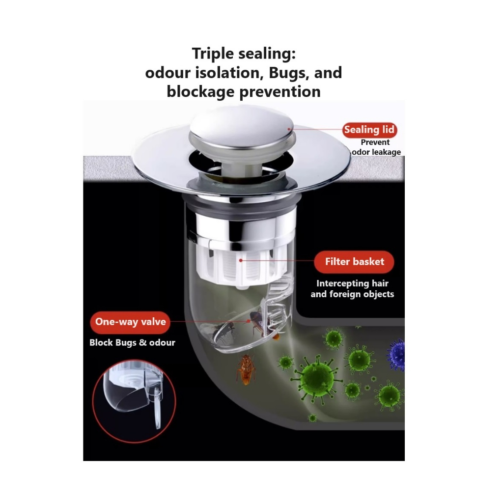Toilet Sink Wash Basin Leaking Plug Washbasin Drainer Bouncing Core Press Filter Deodorant Artifact block-out bugs,odour