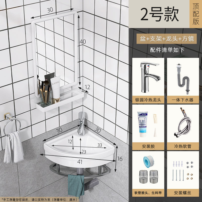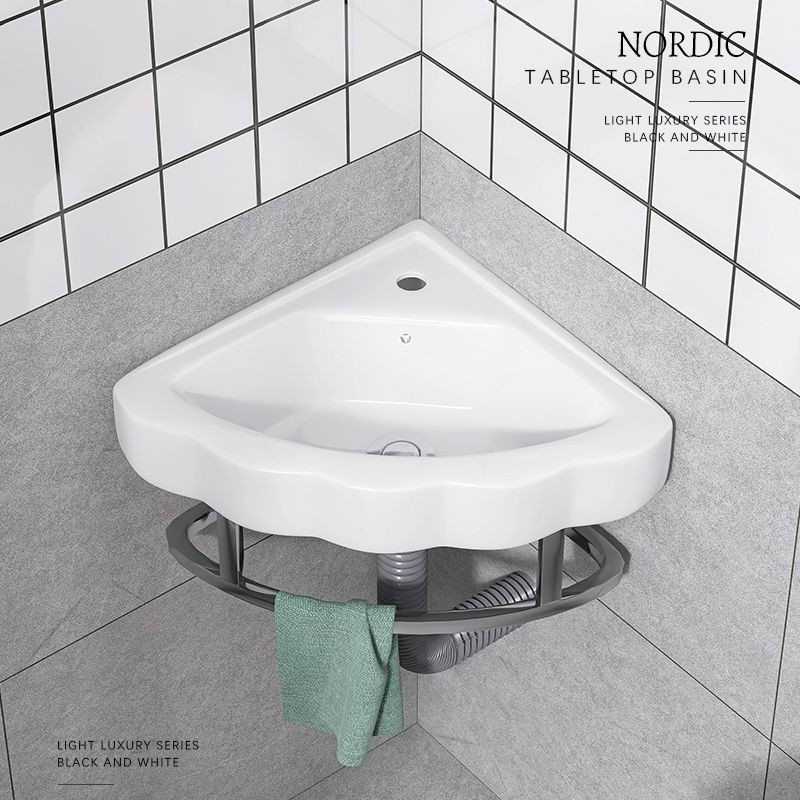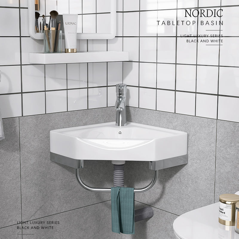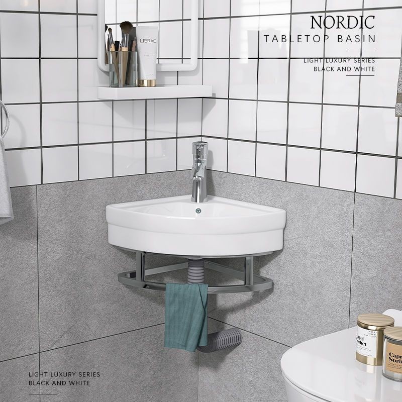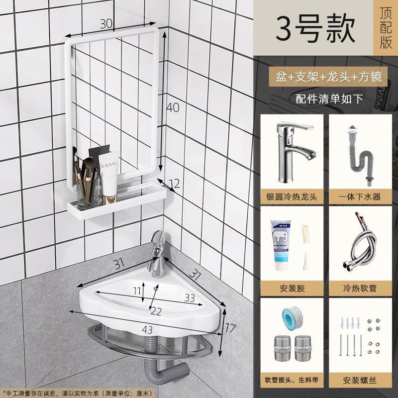 Toilet Triangle Wash Basin Home Balcony Basin Wall-Hung Basin Wall-Mounted Washstand Pool Mini Washbasin Simple/Punch-Free Wall-Mounted Wash Basin Installation-Free Small Washbasin Wash Basin