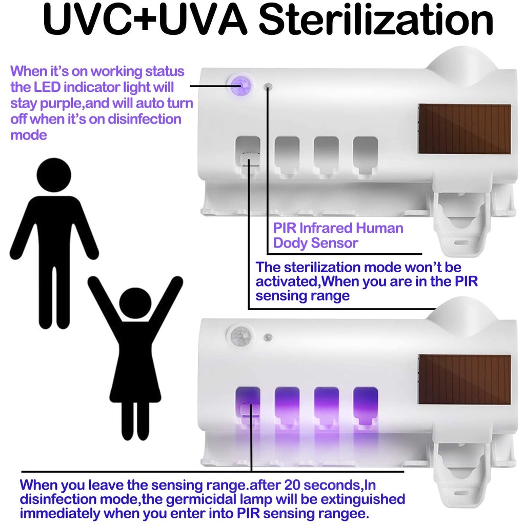 Toothbrush Sanitizer UV Toothbrush Holder for Electric Regular Toothbrush Bathroom with Wall Mount Toothpaste Dispenser