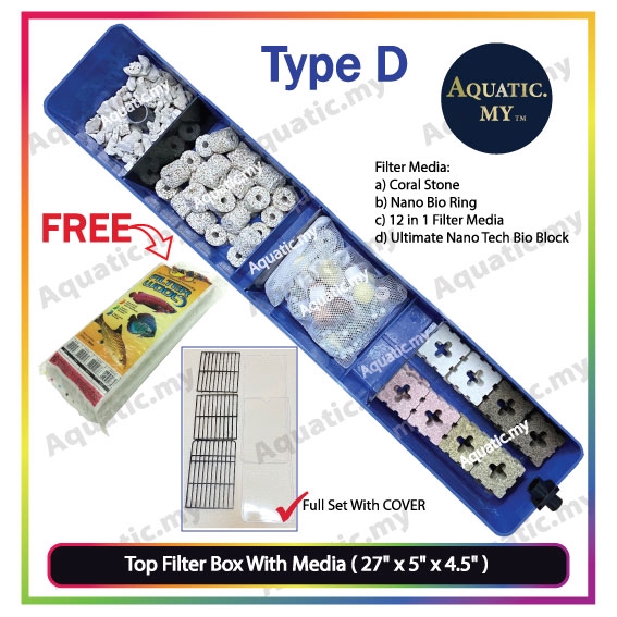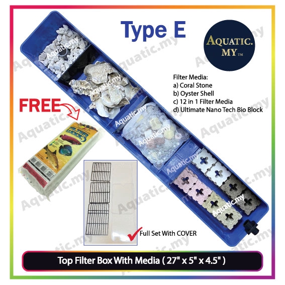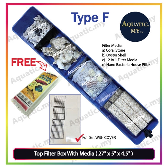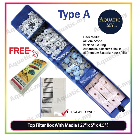 Top Filter Box Aquarium 27" x 5" x 4.5" (Blue) /Top Filter Tank/ Filter Box