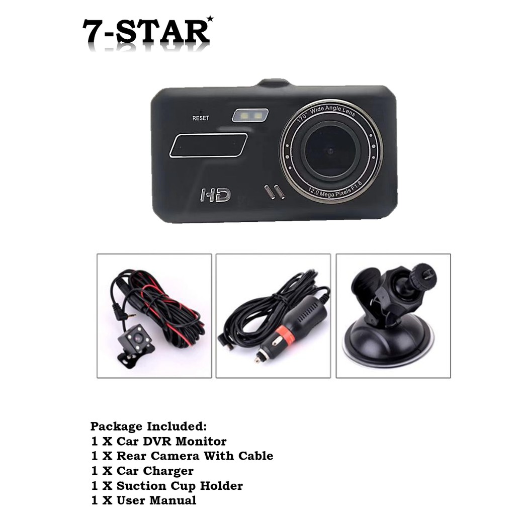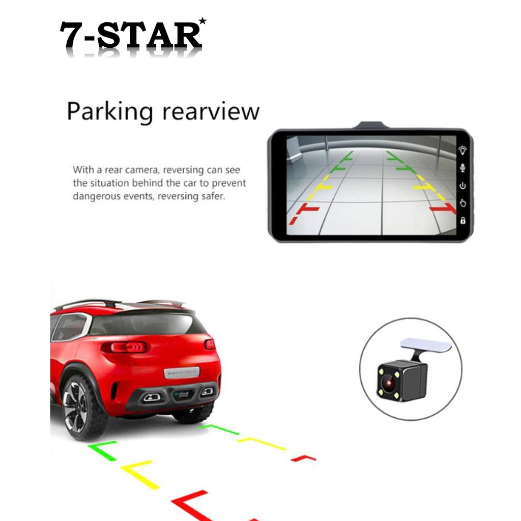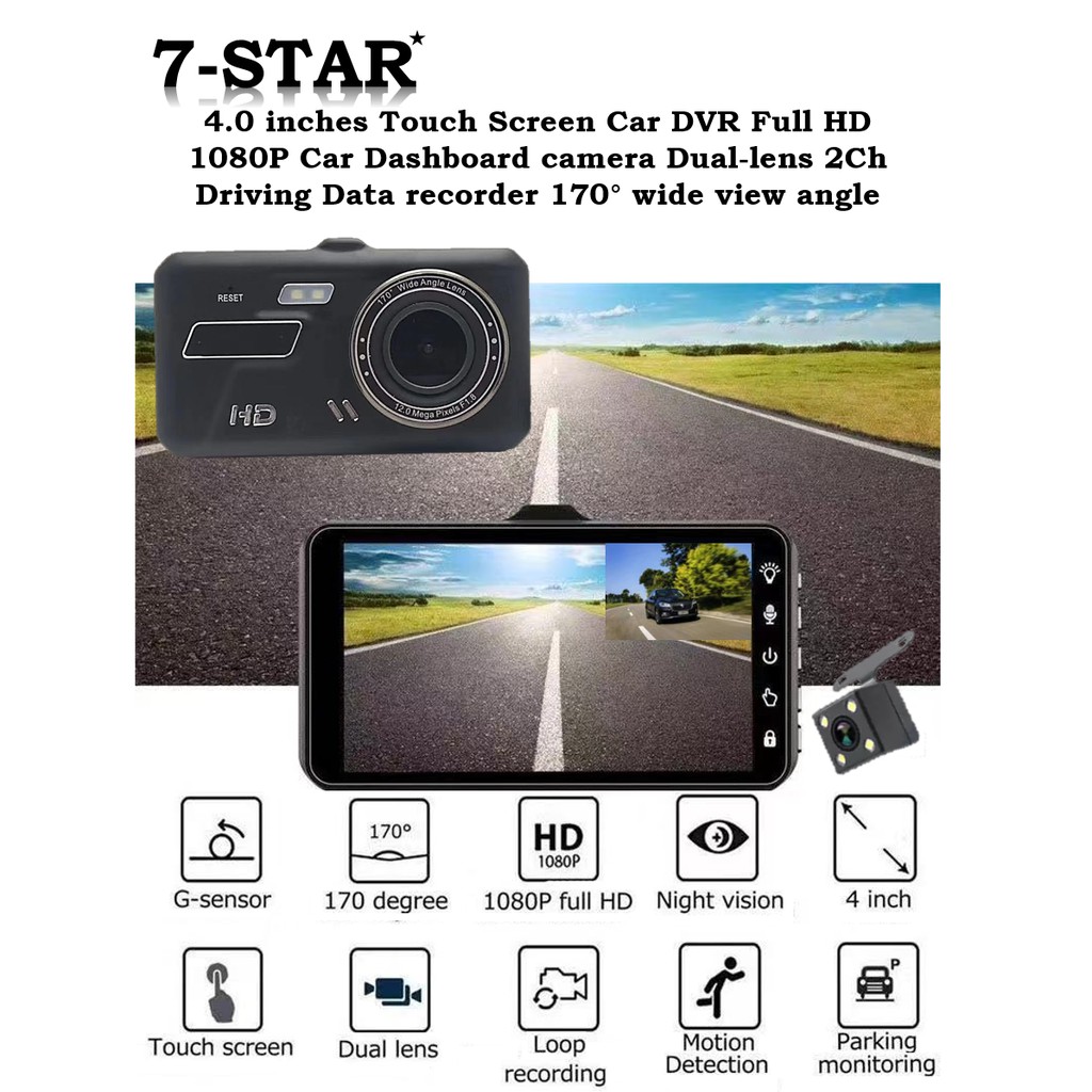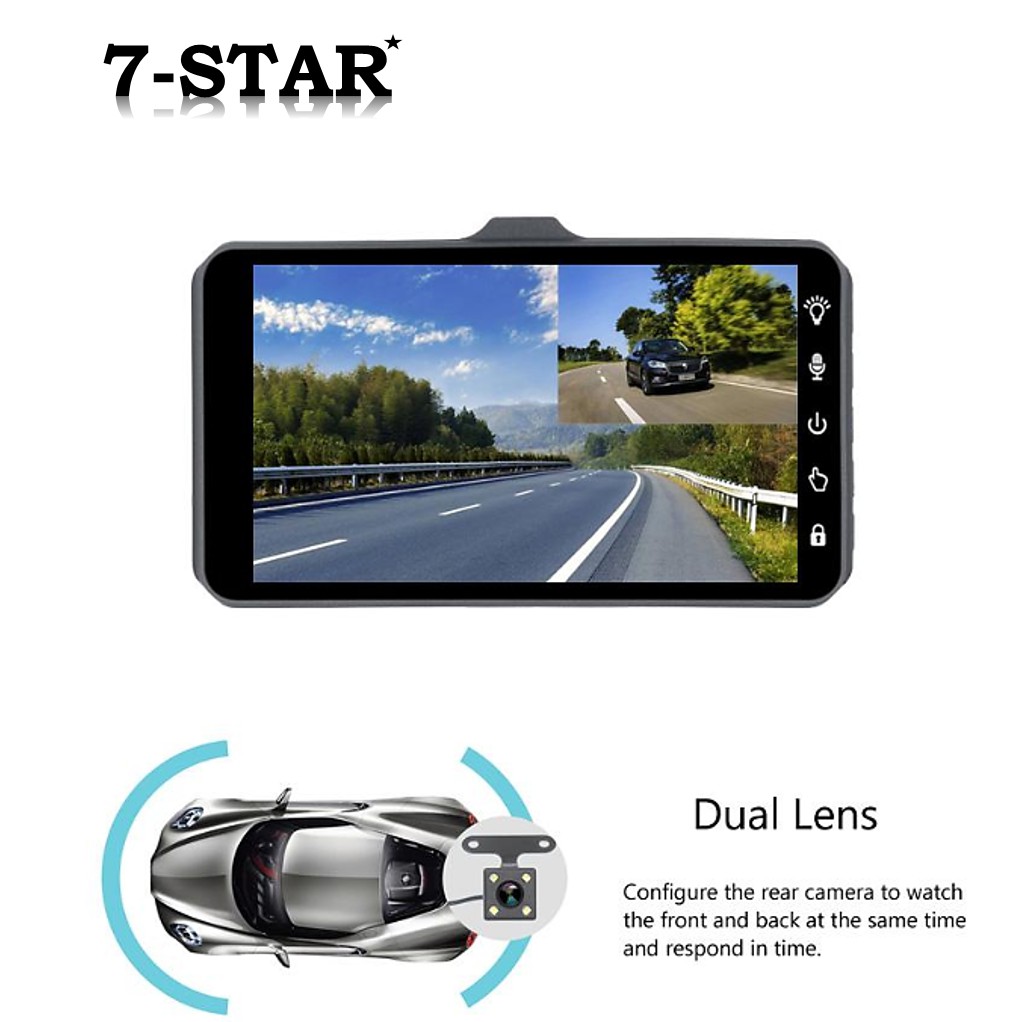7-STAR* Touch Screen 4" Dual-Lens Dashcam Car Recorder Front and Back Camera Dash Cam DVR
