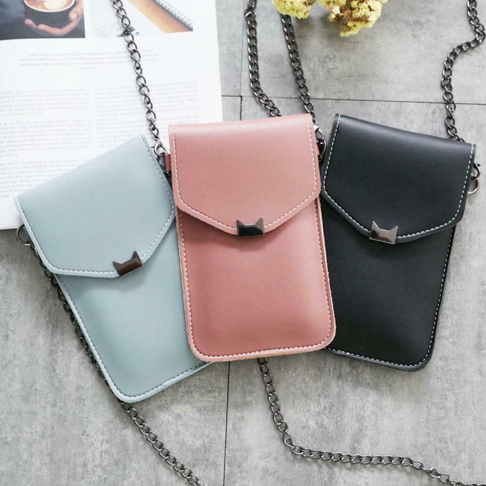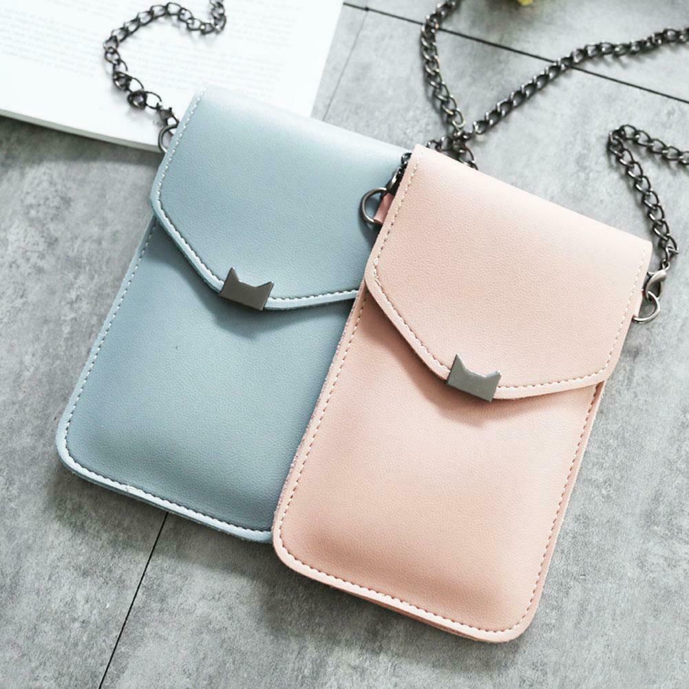 Touch Screen Cell Phone Purse Smartphone Wallet Leather Shoulder Strap Handbag Women Bag Cat Ear Retro Mobile Phone Bag Chain Messenger Bags Small Flap Bag Mini Shoulder Bag
