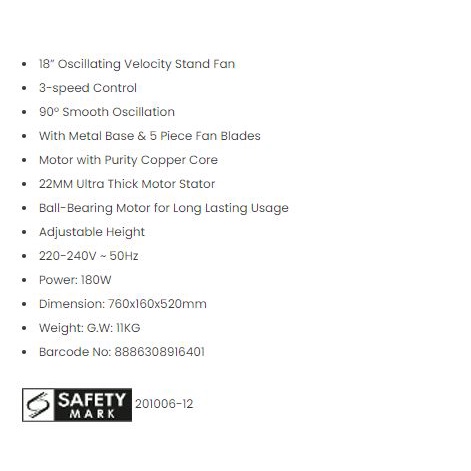Toyomi High Velocity Stand Fan 18 - 20" PSF 1860 || PSF 1870 || PSF 2070 || PSF 2020