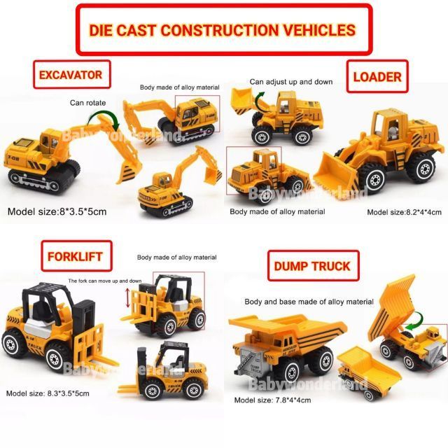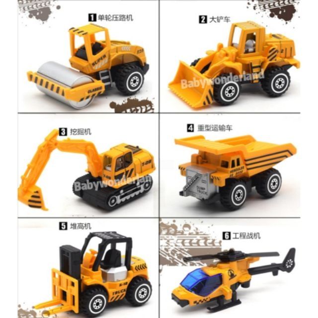 Toys Car 6 in 1 MINI Construction Vehicles Series Excavator Loader Forklift Dump Truck Road Roller Helicopter