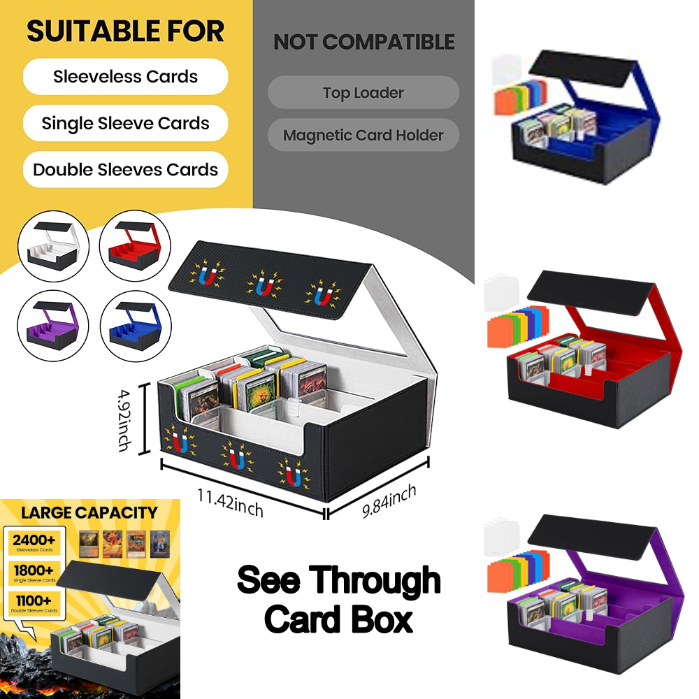 Assorted Trading Cards Storage Box 2400+ TCG Commander Deck Case, Stackable Organize Display Storage