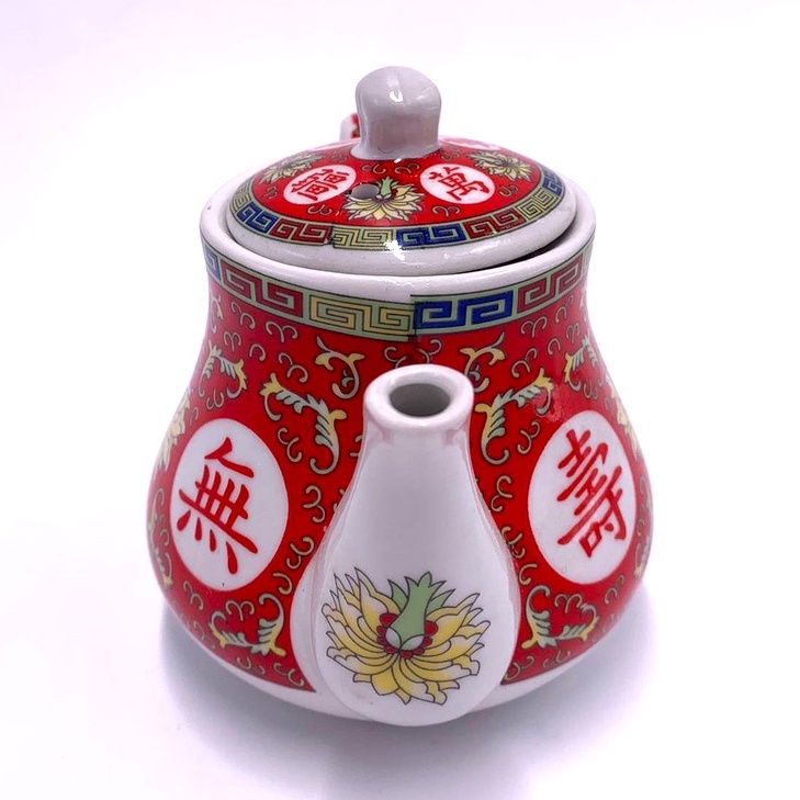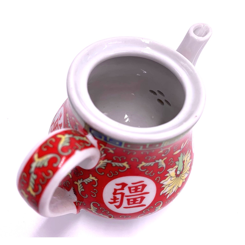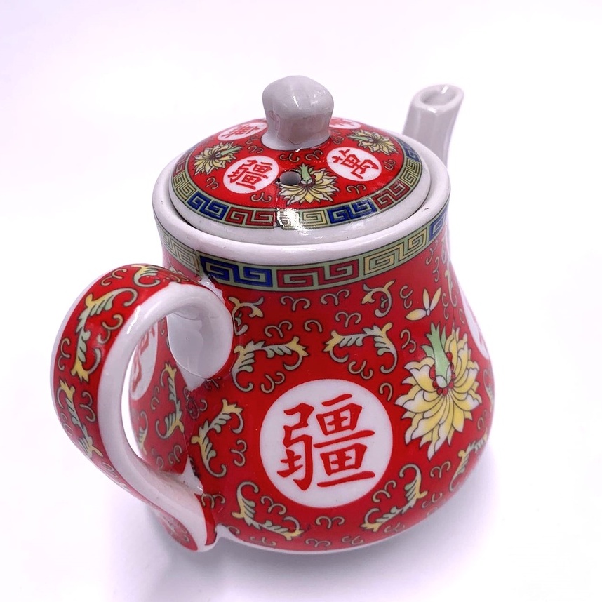 Traditional Chinese Ceramic Teapot | Small Teapot | Worshipping Tea Pot | Red "WAN SHOU WU JIANG" Pot