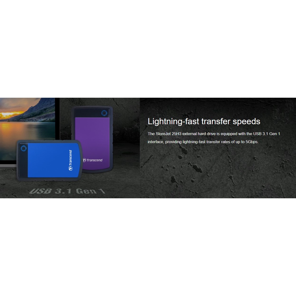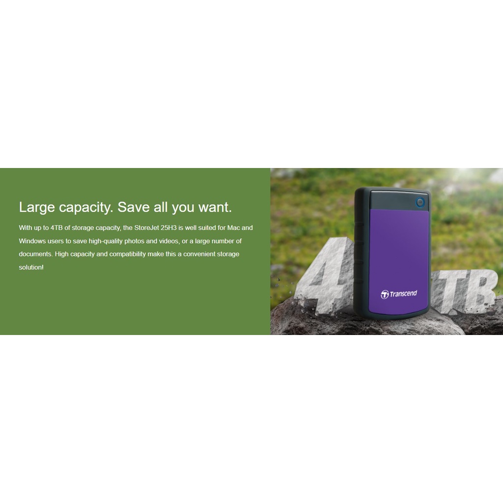 Transcend StoreJet 2TB 25M3G 25H3 USB3.1 Slim External Hard Drive Military Green Iron Gray Blue Purple Shock Resistant