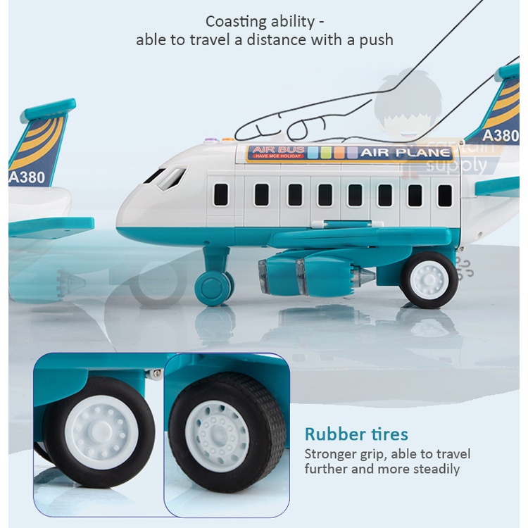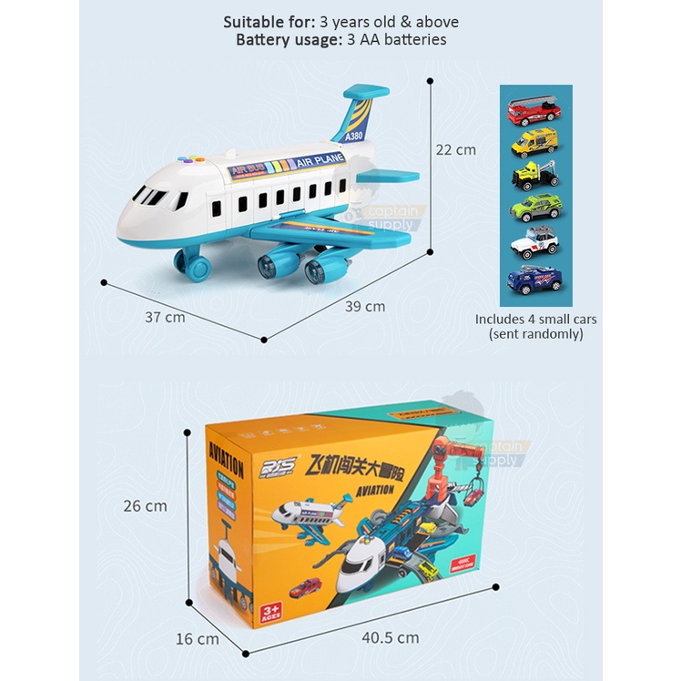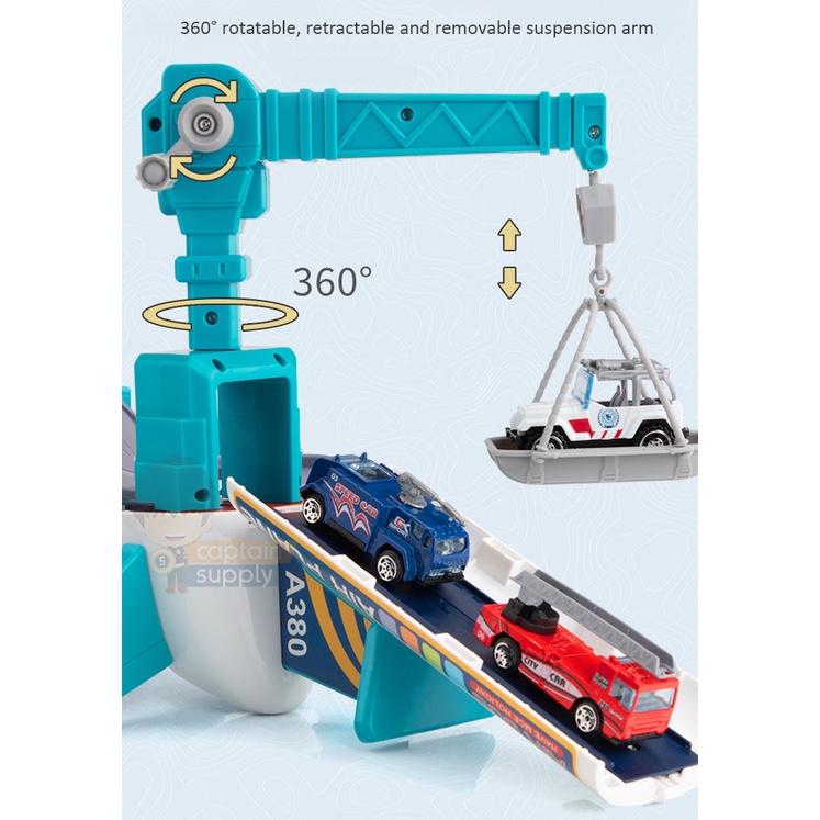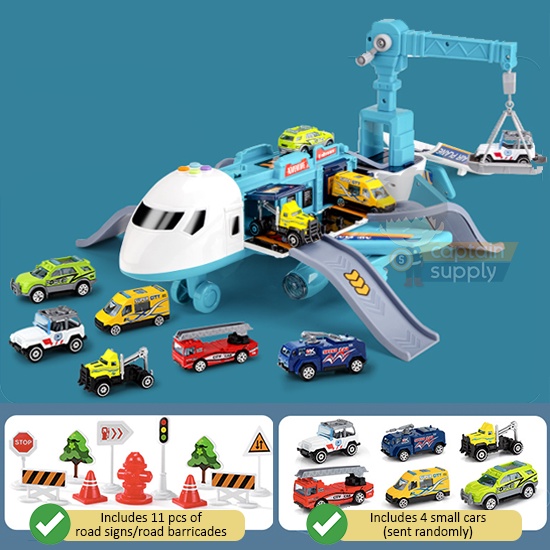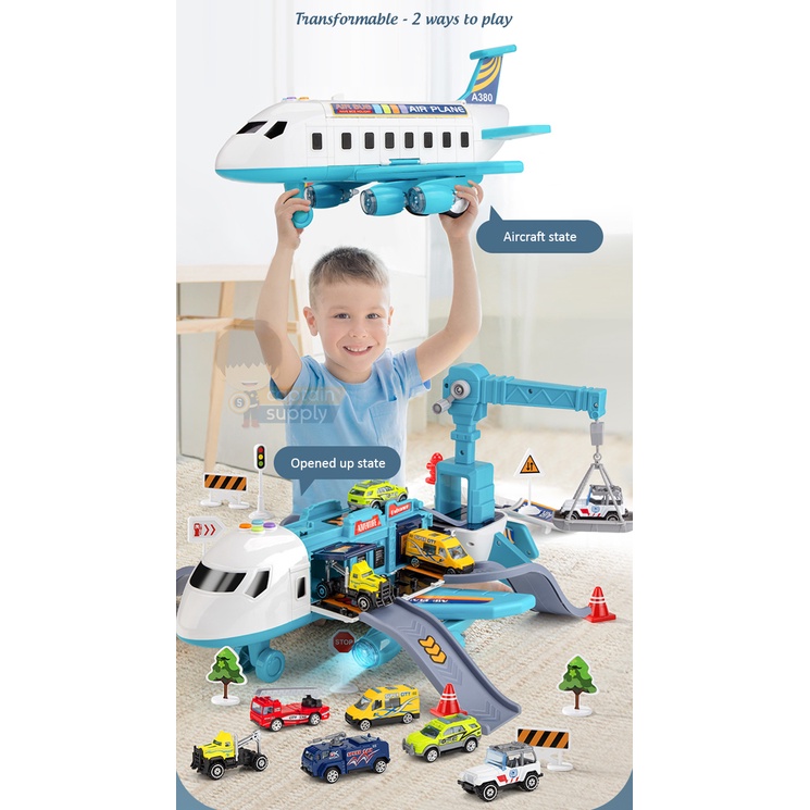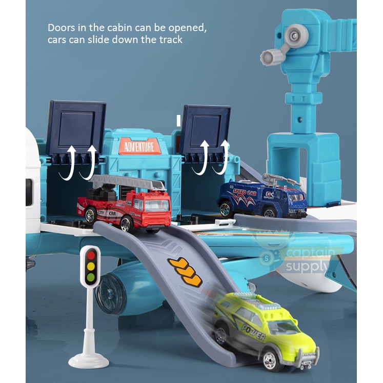 Transformable Airplane Toy with Sliding Track and 4 Small Cars
