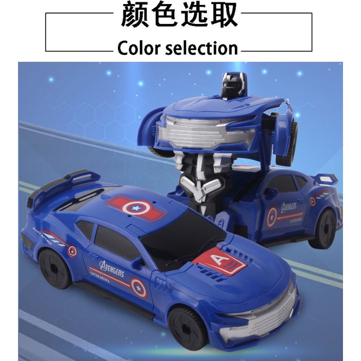 Transformer Robot Toy Car 2-in-1 Transform with Light Kereta Mainan Budak Police Car CaptainAmerica Bumblebee Avenger