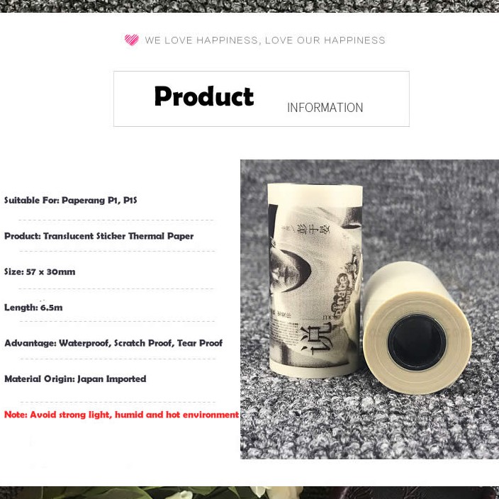 Translucent Sticker Thermal Paper Semi Transparent For Paperang / Comicam / Peripage / Receipt Printer