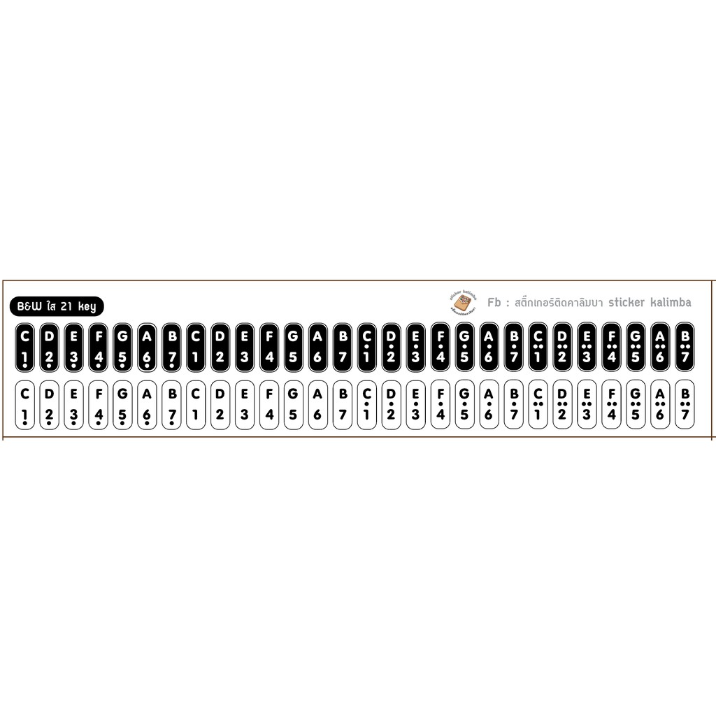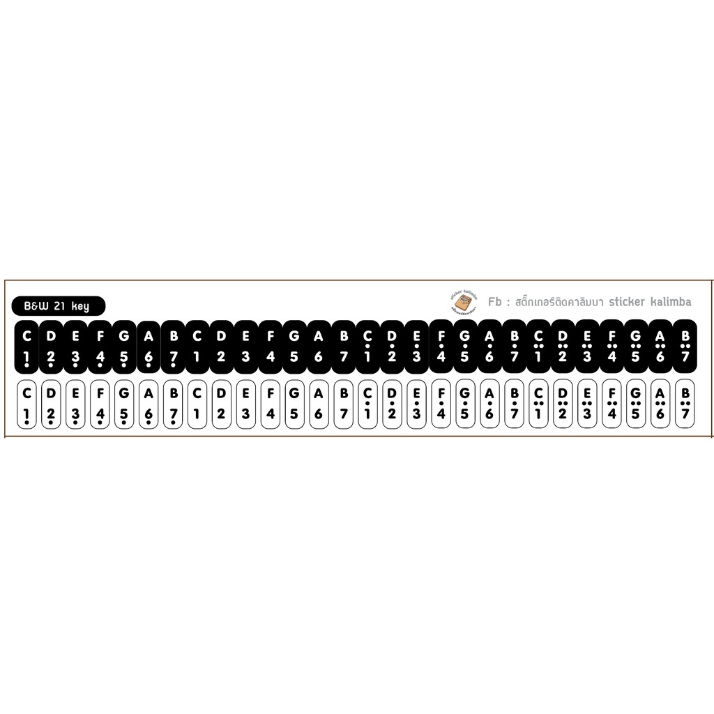 Clear And White sticker On C Key Kalimba 21 Sticks Divided According To Octave Sound (Kalimba sticker)