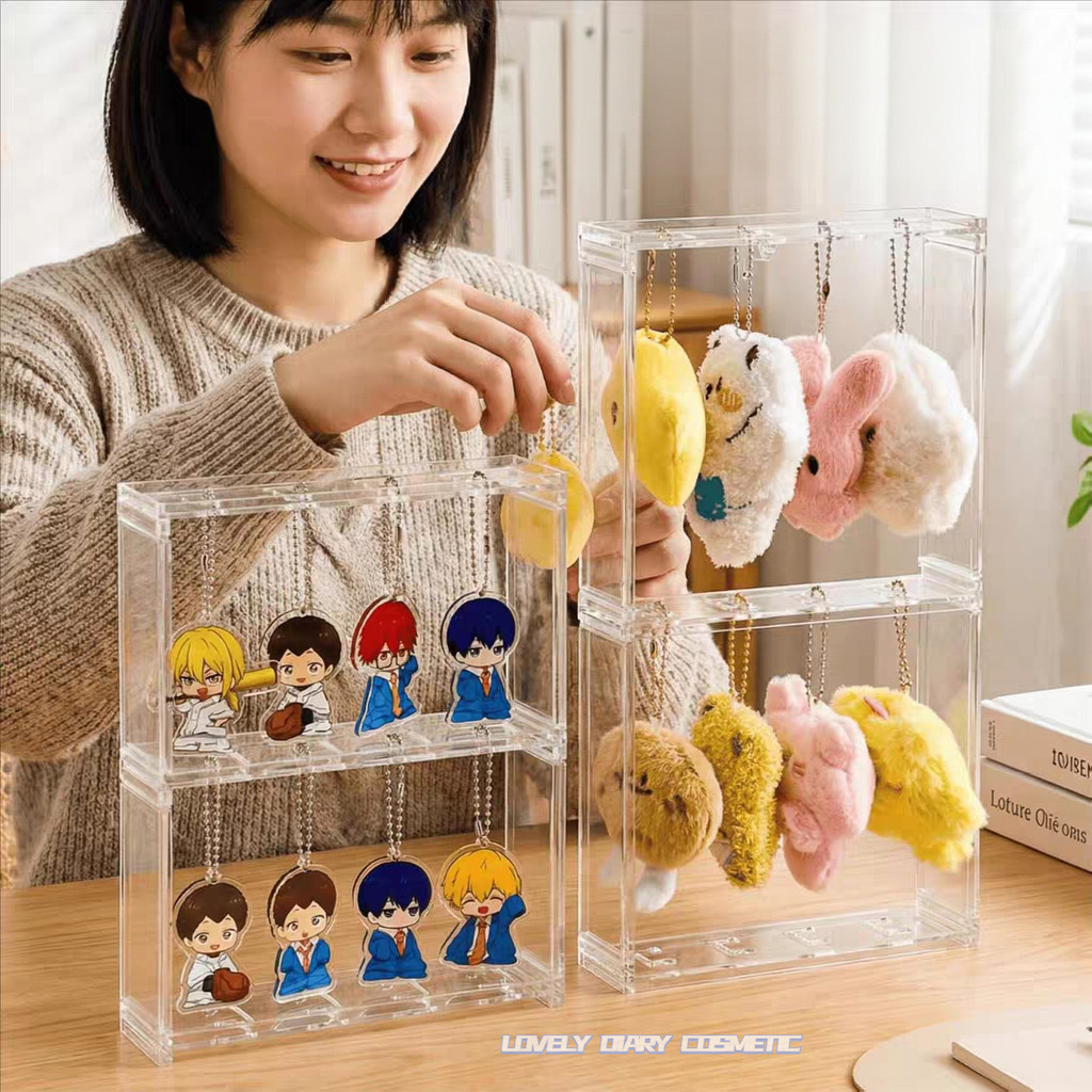 Transparent Keychain Display Box Clear for Plush Pendants Blind Box Charm Hanging Dustproof Organizer