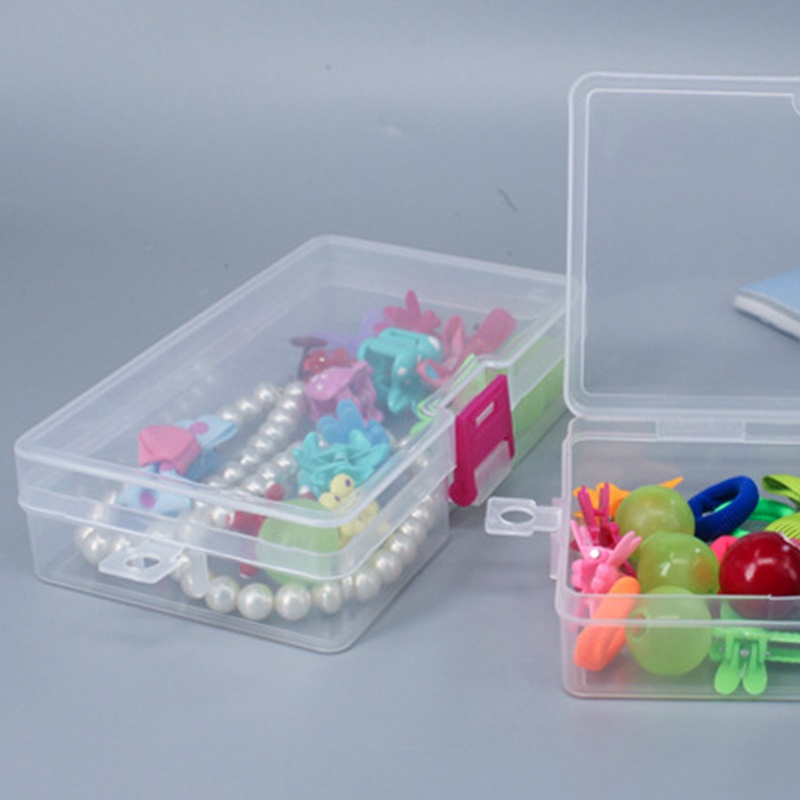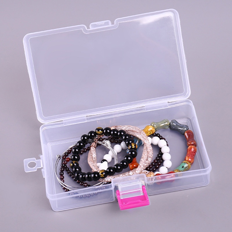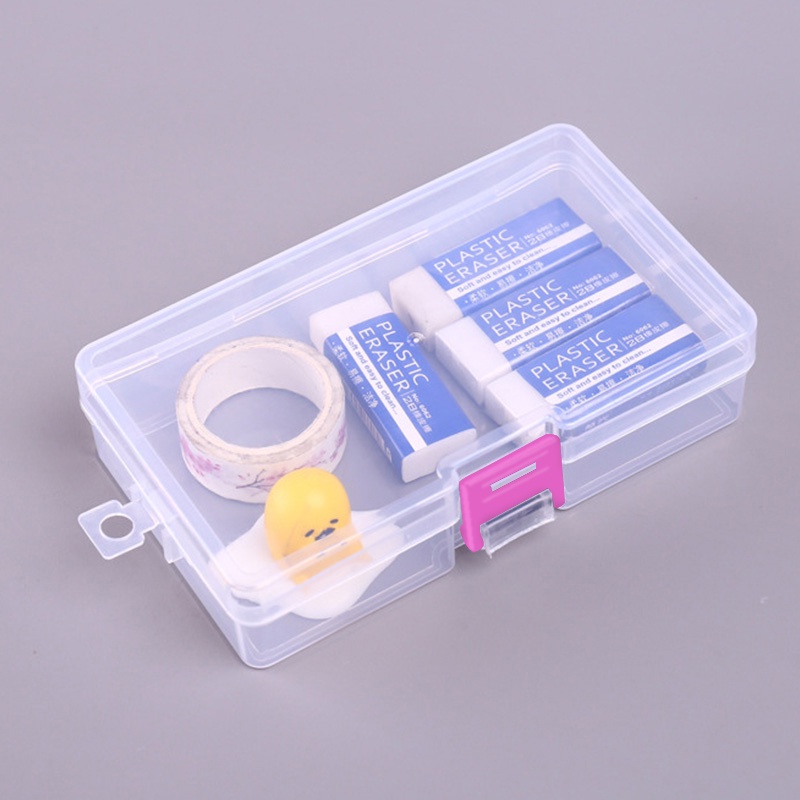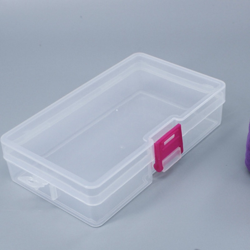 Transparent Rectangle Storage Box Portable Plastic Storage Case with Pink Buckle