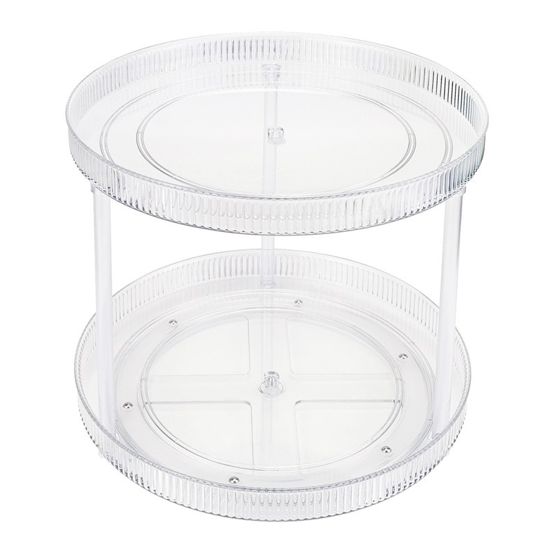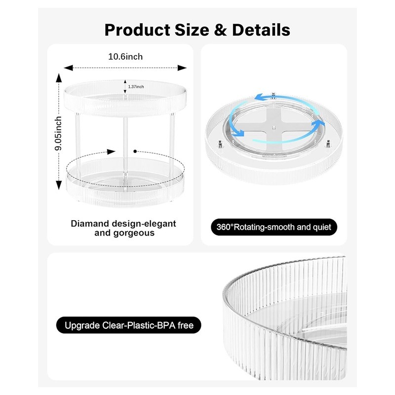 Transparent Rotating Storage Tray 2 Tier Lazy Susan Bathroom Countertop Organizer, Cosmetics and Perfume Organizer