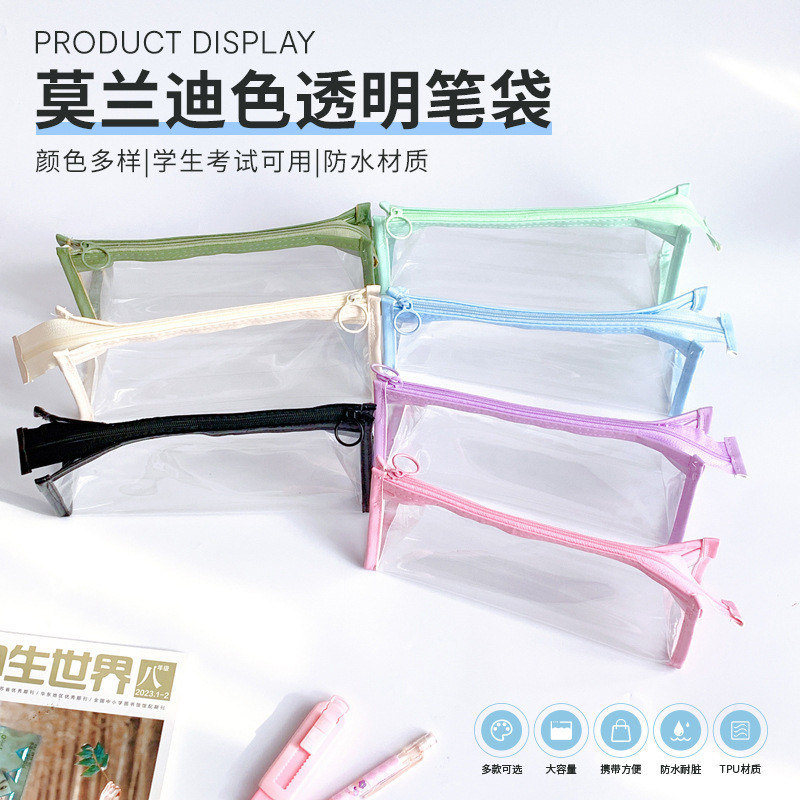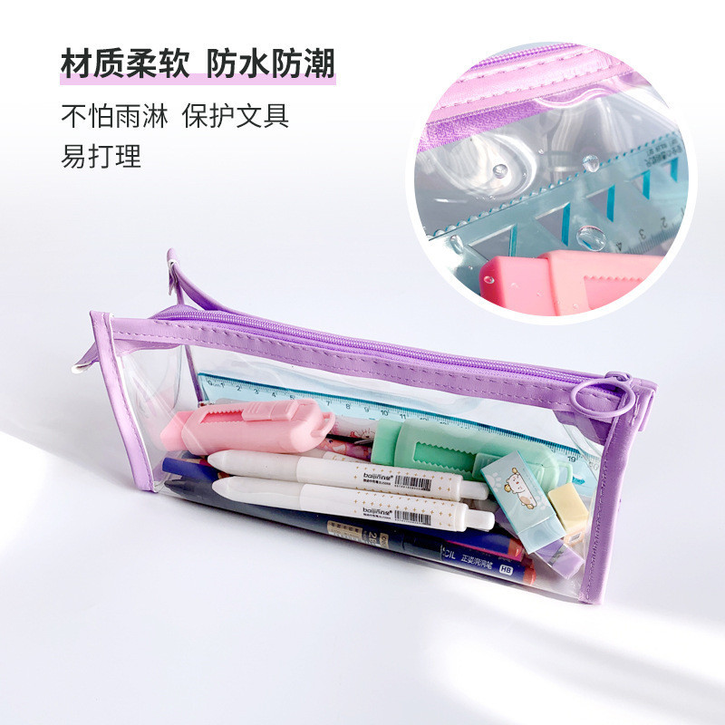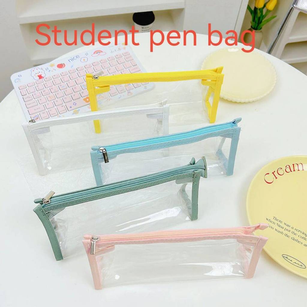 Transparent portable pencil case, large capacity, high value, student pencil bag, waterproof zipper