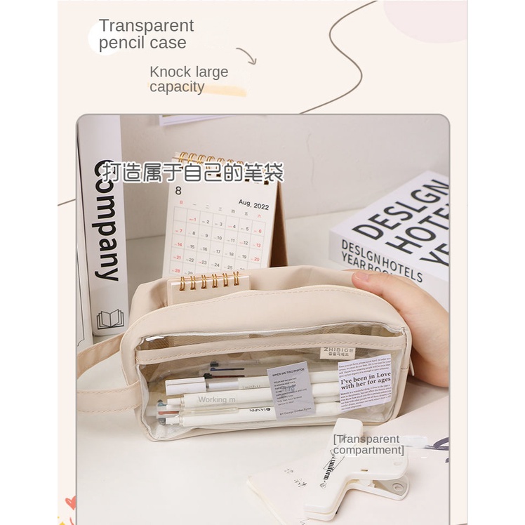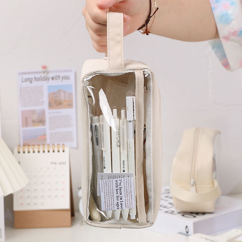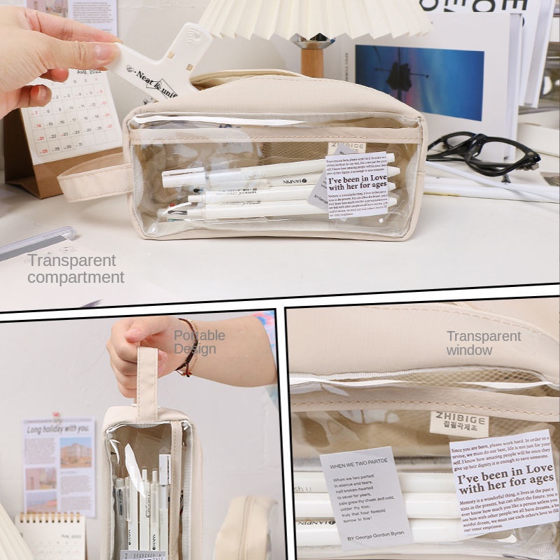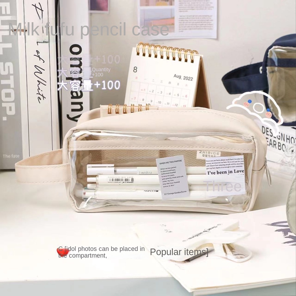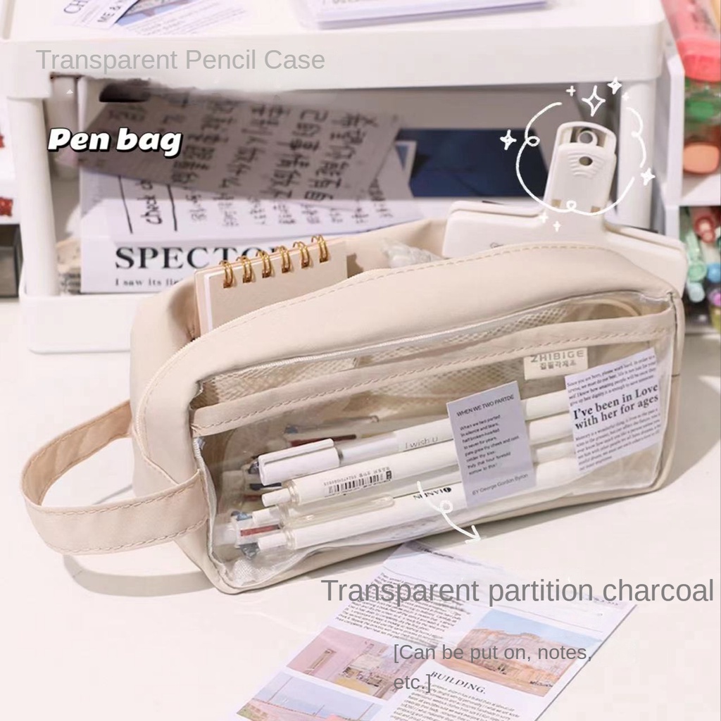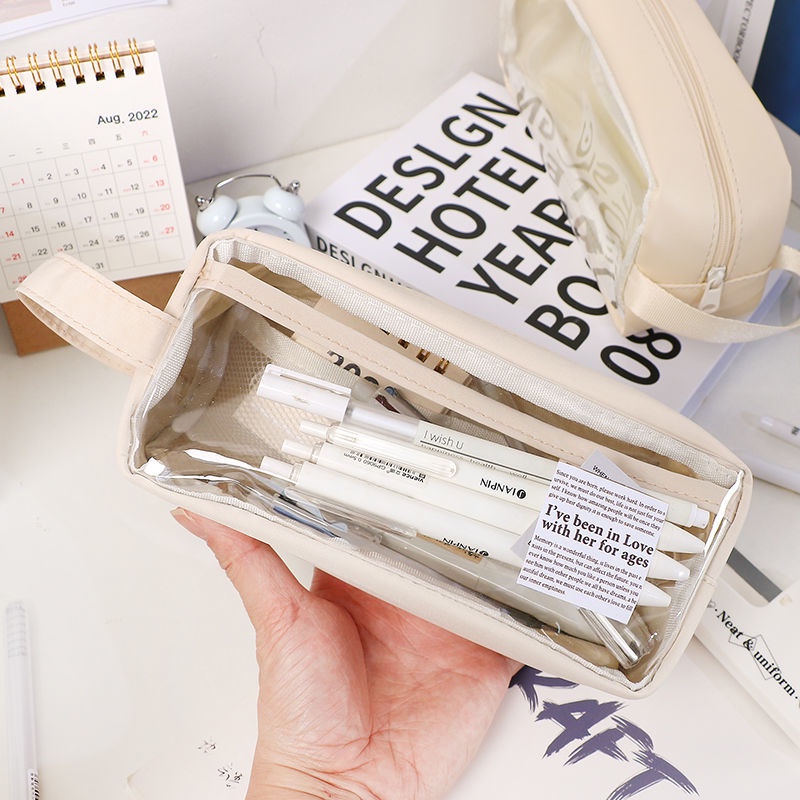 Transparent Waterproof Pencil Case Stationery Transparent ins High-Value Student Dirt-Resistant Large-Capacity Exam Dedicated School Stationery Bag Cute Pencil Case
