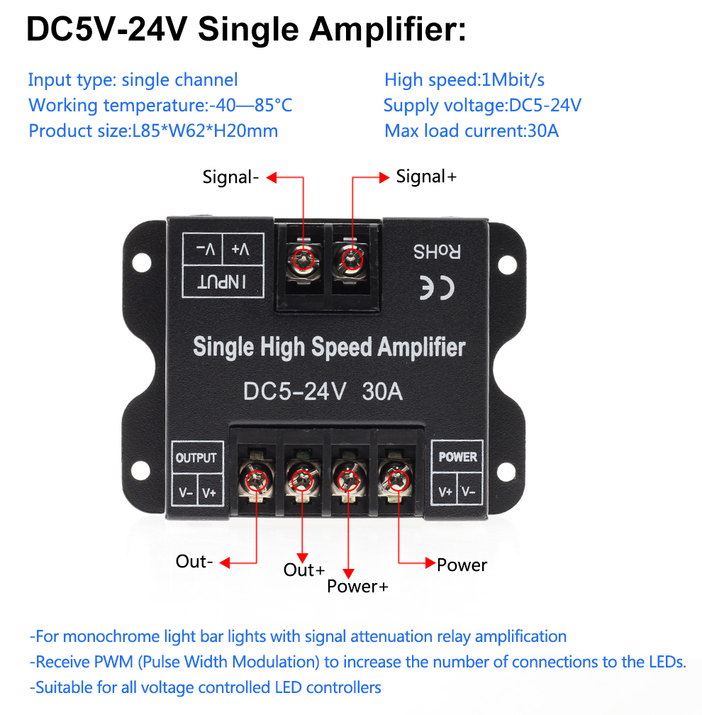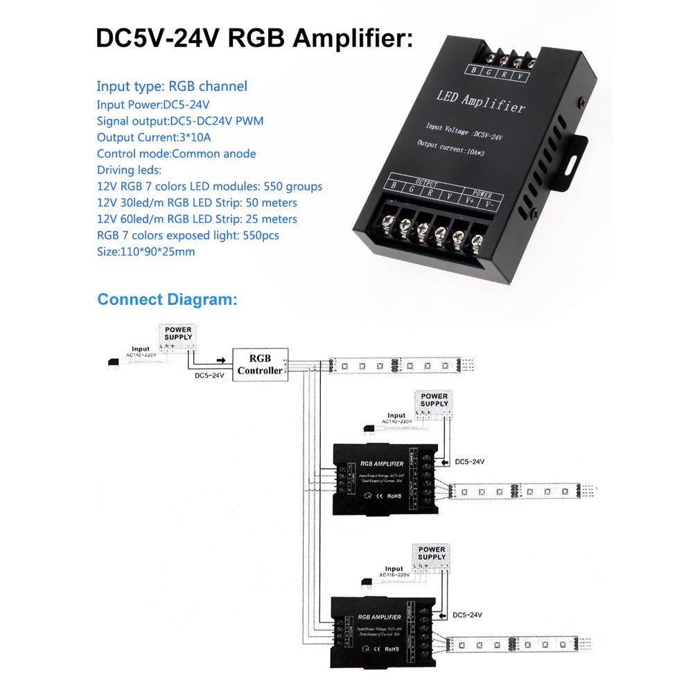 Tranyton Lighting RGBW / RGB LED Strip Amplifier DC5V-24V High Speed Amplifier for RGBCCT RGBW RGB Single Color LED Tape Power Repeater Controller